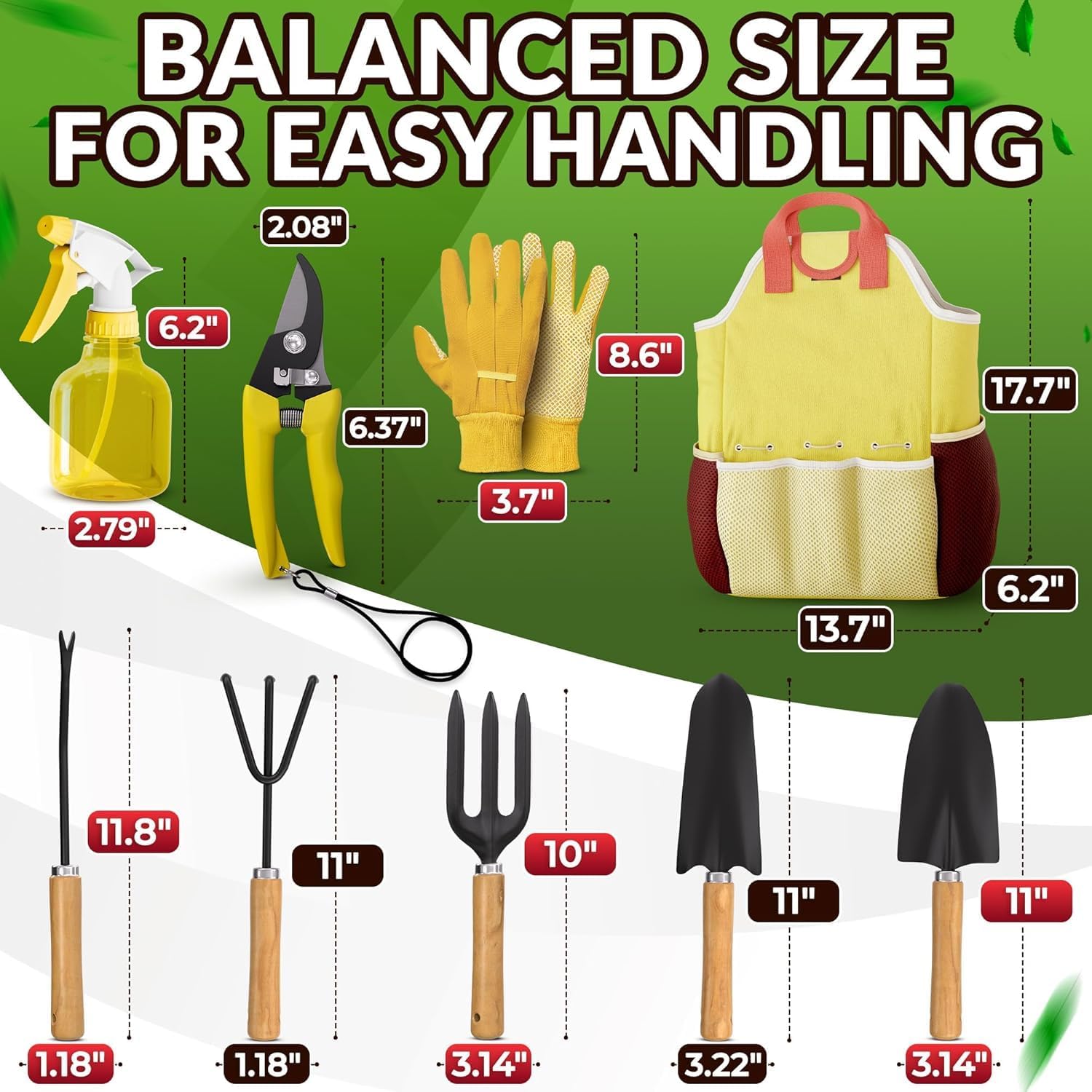 🌱Comprehensive 9-Piece Gardening Kit: Our gardening set for women includes a weeder, hand fork, hand rake, transplanter, trowel, pruner, spray bottle, & a pair of gloves, offering easy handling of tasks