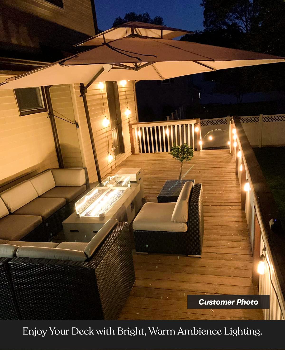 Dimmable & Widely Used Indoor Outdoor Lights: Brightech outdoor decorative yard lights are the perfect decoration for balcony terrace, garden, bistro, bedroom, living room, pergola, gazebo, tent, barbecue, city roof, market, cafe, umbrella, dinner, wedding, birthday, party etc. Brightech patio string lights are easy to assemble, plug to play. You can string them straight, or wrap them around trees for unique shapes.