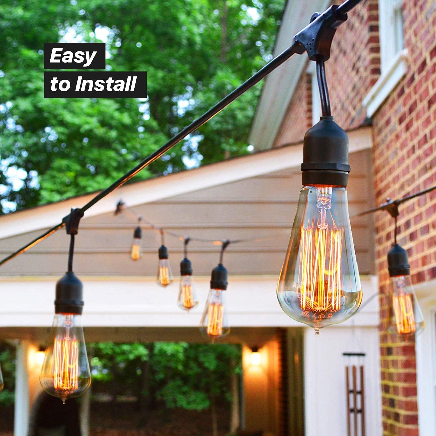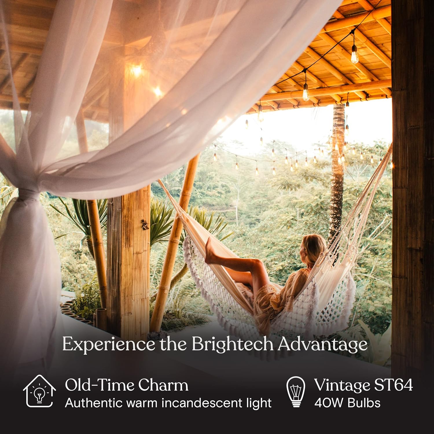 Brightech Ambience Pro Incandescent Outdoor String Lights – 48 Ft Dimmable Patio Light – 40W Commercial Waterproof Porch String Lights for Outside, Backyard – 15 Vintage Filament Bulbs, Warm White