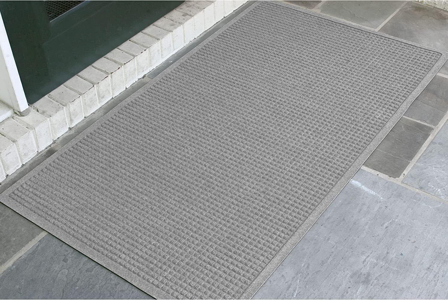 Bungalow Flooring Waterhog Door Mat, 3′ x 5′ Made in USA, Durable and Decorative Floor Covering, Skid Resistant, Indoor/Outdoor, Water-Trapping, Squares Collection, Medium Grey