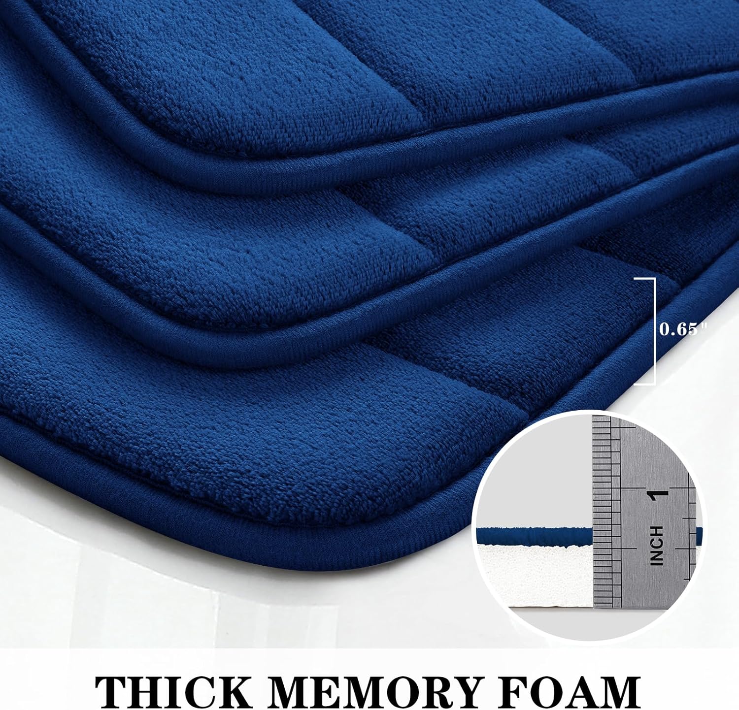 BYSURE Navy Blue Memory Foam Bath Mats, Non Slip Extra Soft Absorbent Machine WashableToilet Bathroom Rug Set 3 Piece (20″x32″+24″x44″+U Shape 20″x24″)
