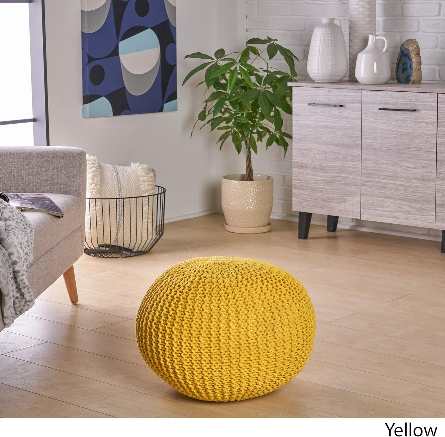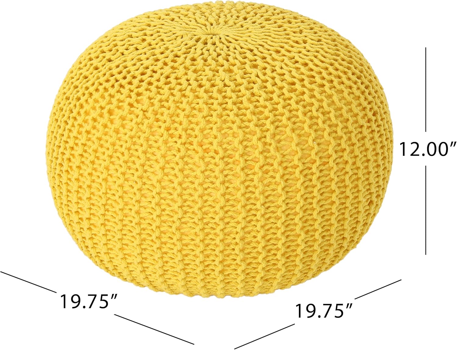 Christopher Knight Home Belle Knitted Cotton Pouf, Yellow