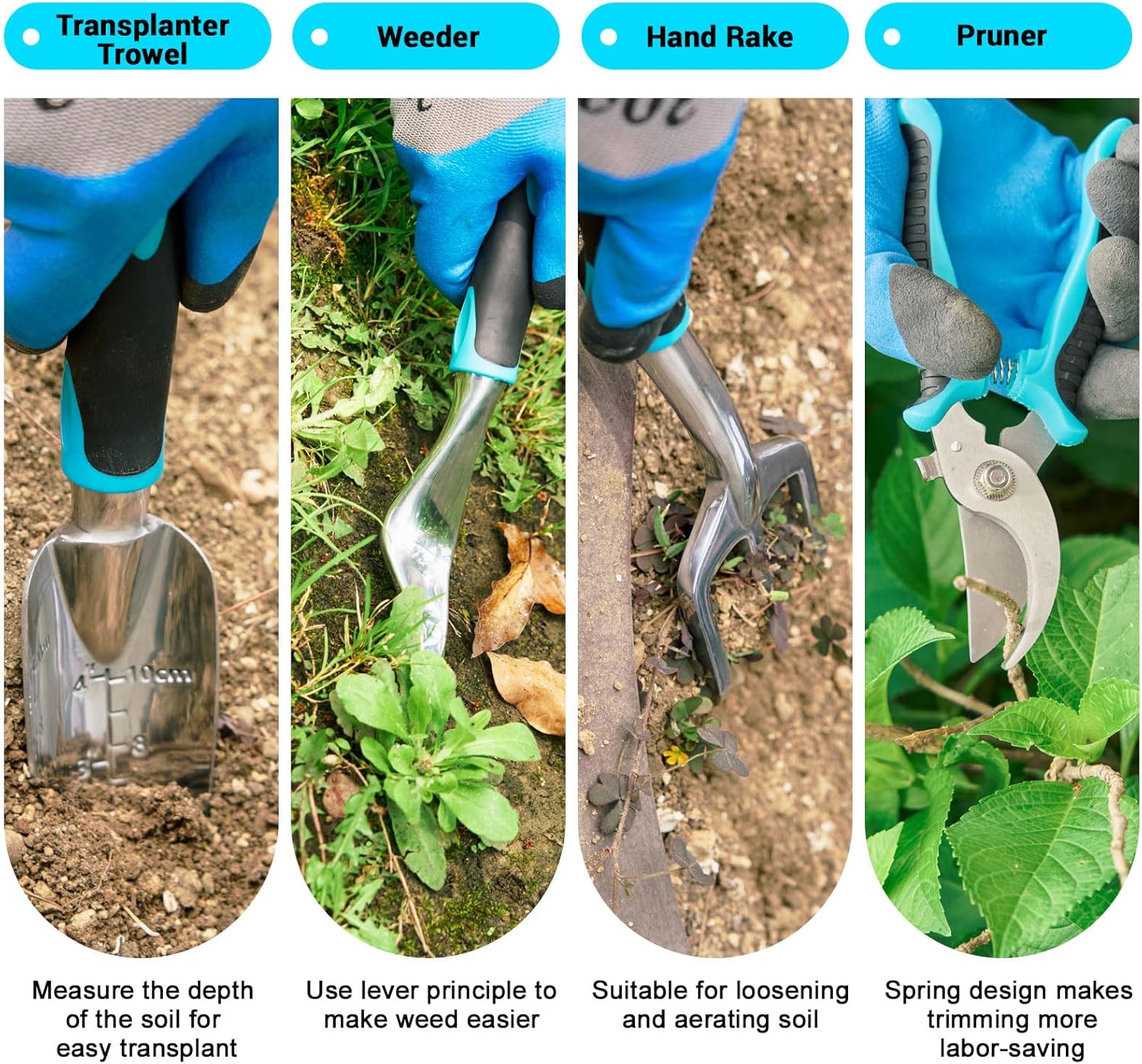 Garden Tool Set with Non Slip Rubber Grip,8 Piece Stainless Steel Gardening Tool Sets,Heavy Duty Outdoor Hand Tools with Bag,Uprooting Weeding Tool, Gifts for Women Men (Blue Garden Tools (11 Pcs))
