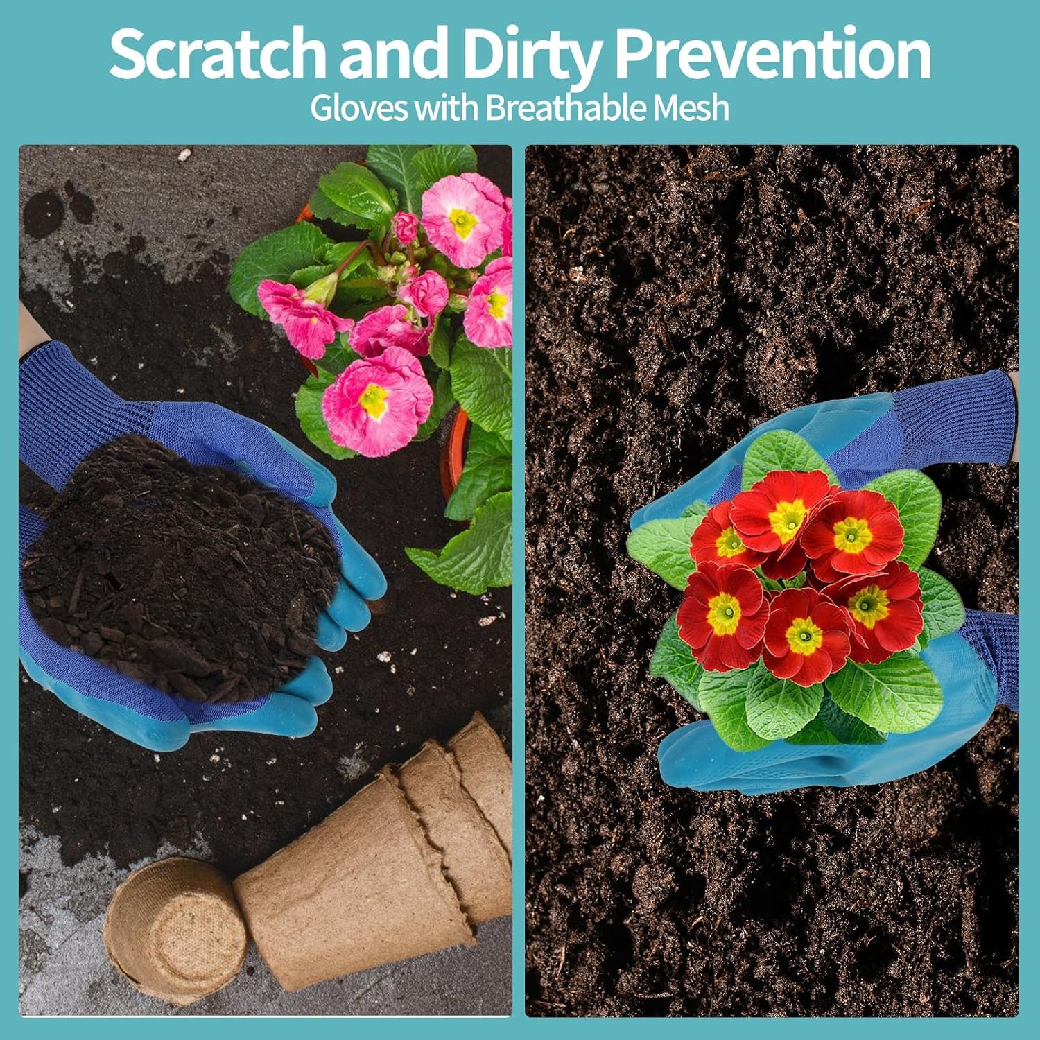 Chaos & Dirty Prevension – This gardening tool for gardening is with a pair of gloves and a plant repotting pat, which makes your gardening work more tidy and clean, prevent you from chaos, srathch and dirty.