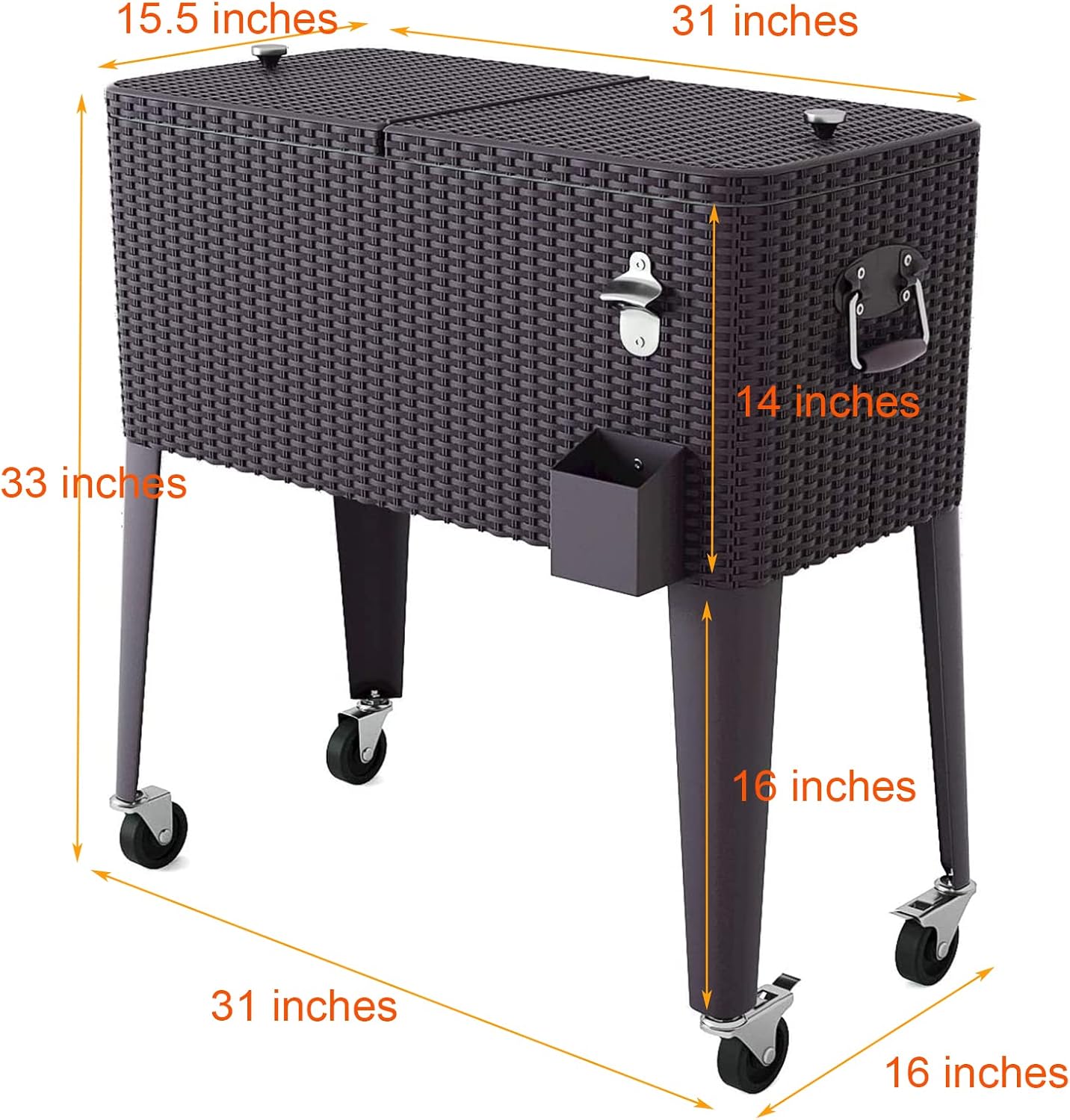 Ideal for banquet and party: a lift-off top is made for convenient adding and taking out drinks bottles. This cooler cart is ideal for patio, back yard or outdoor entertainment area, and perfect for any leisure occasion.