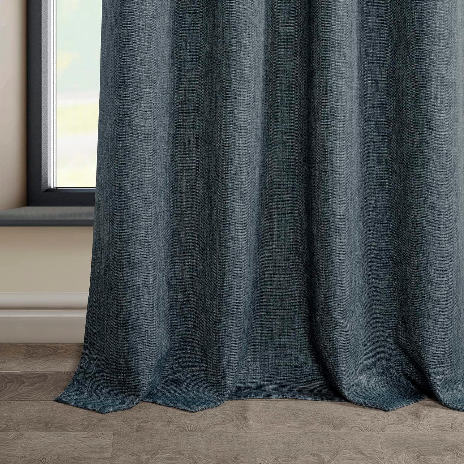 HPD Half Price Drapes – Grommet Faux Linen Curtains for Living Room (1 Panel) – 50W X 108L – Textured Room Darkening Curtains for Bedroom 108 Inches Long – Drapes for Home Decor, Reverie Blue
