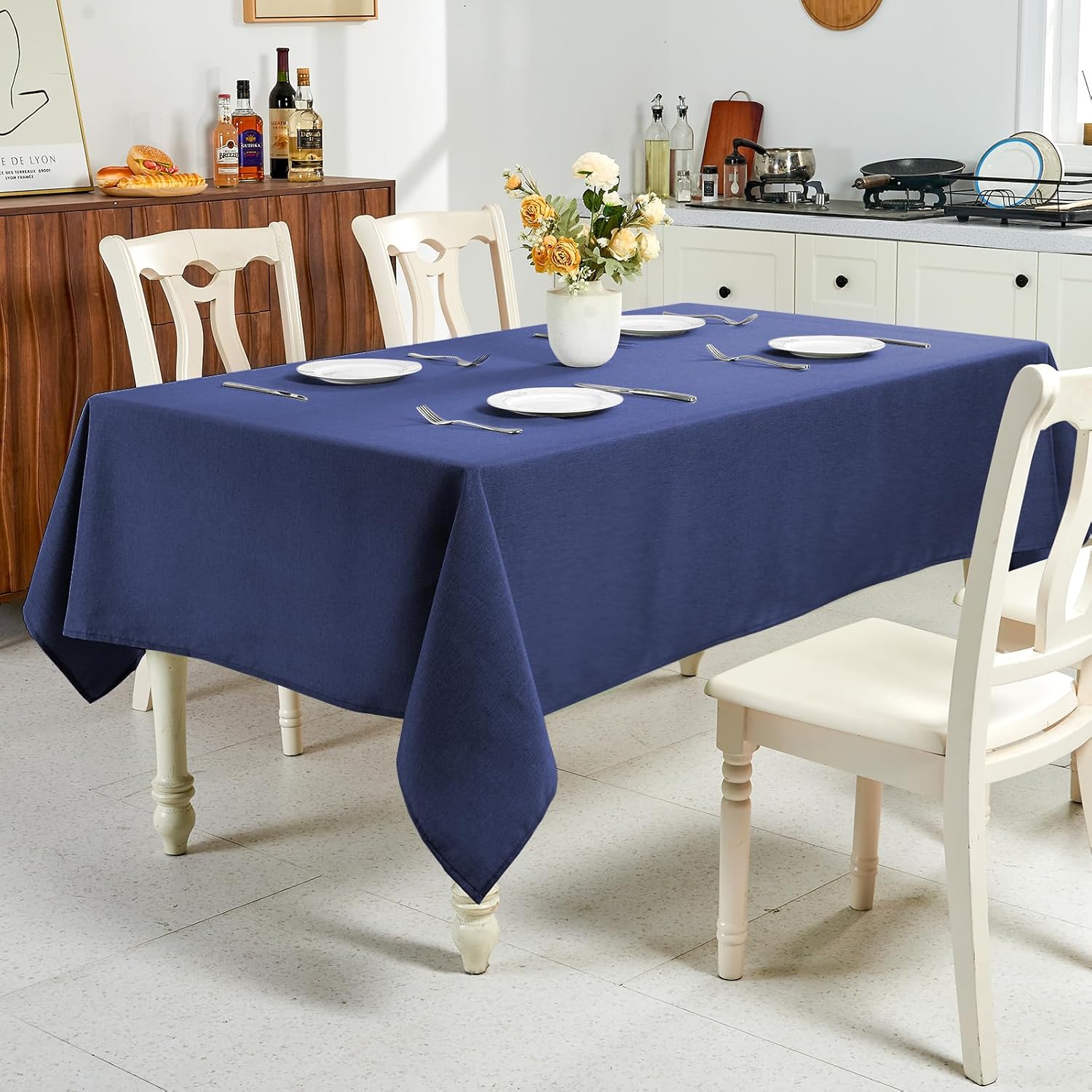 IVAPUPU Textured Linen Table Cloth for Rectangle Table – Navy Blue Tablecloths Rectangular Waterproof Wrinkle Free Wipeable Dining Table Cover for Spring Wedding Birthday Kitchen Decor, 52 x 70 Inch