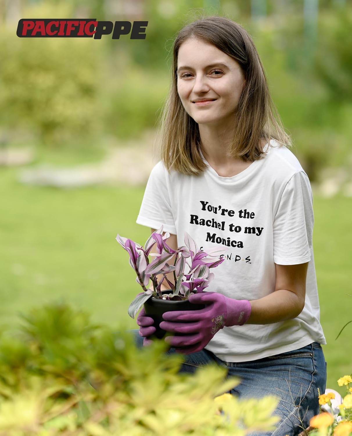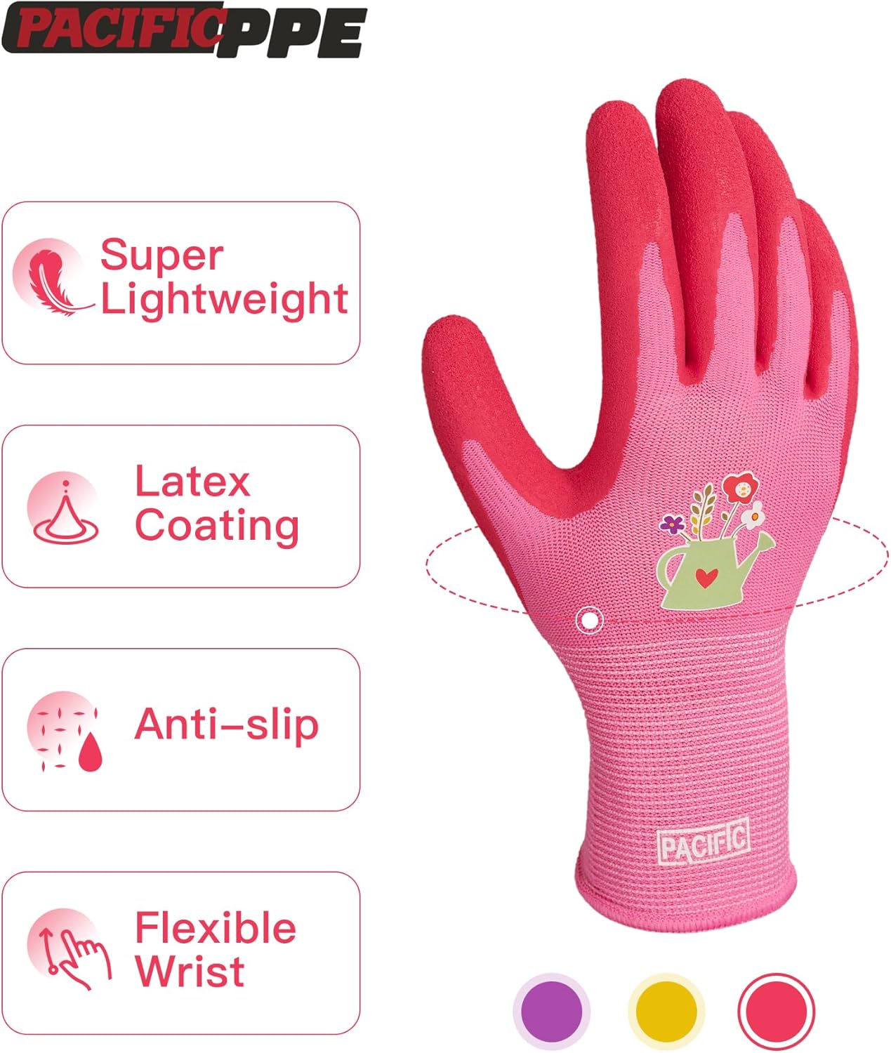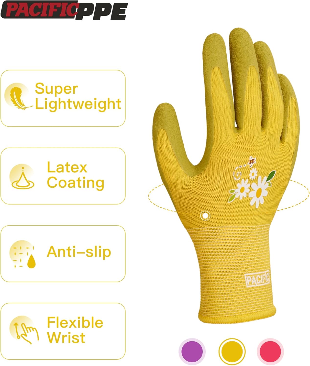 PACIFIC 6 Pairs Gardening Gloves for women, Rubber Coated Garden Gloves, Ladies Yard Work Gloves, Breathable, Purple & Yellow & Red, Small