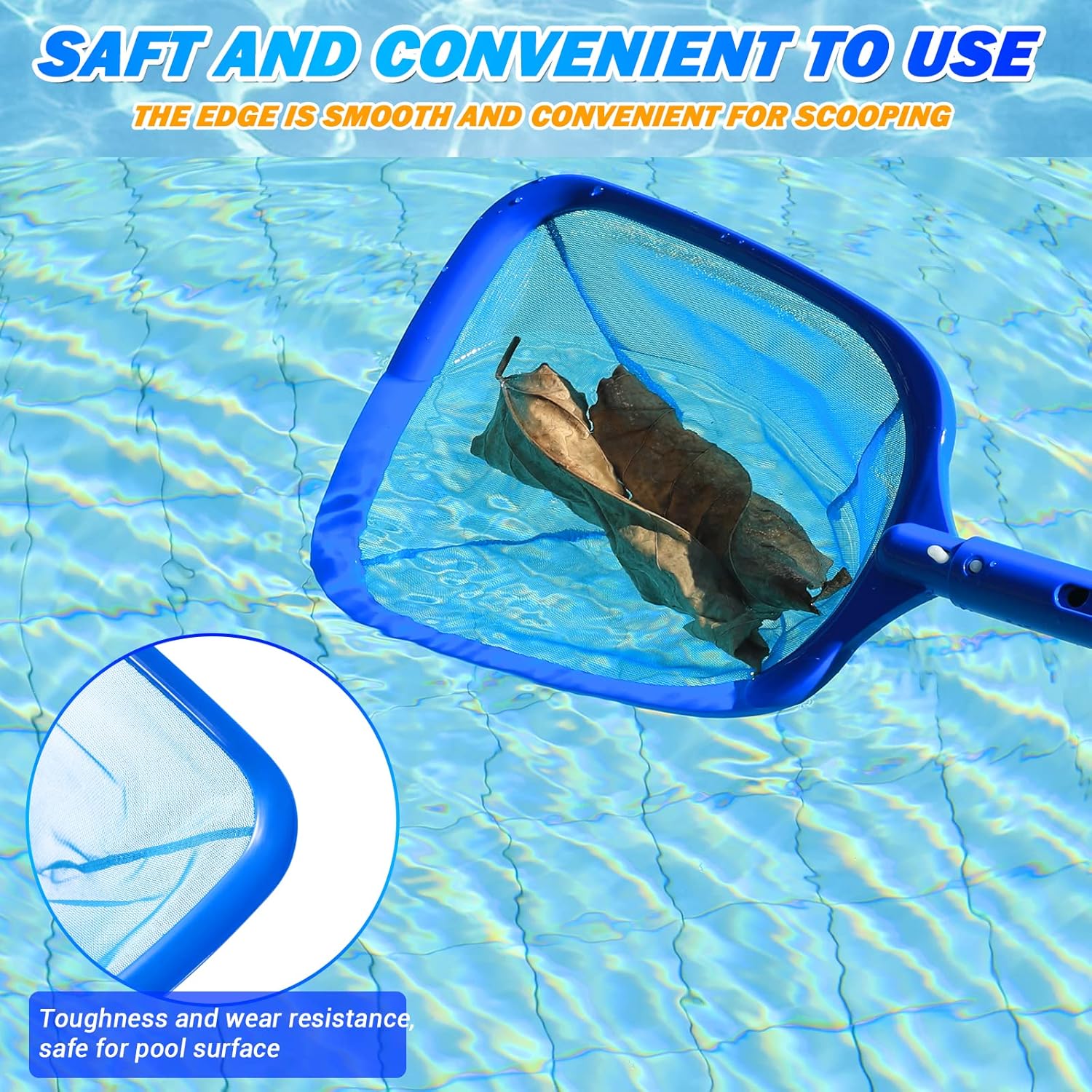 Skim the Finest Debris – The large volume ultra fine mesh netting bag basket allows the pool skimmer to collect more debris at once. Using our pool net, it is very effective at holding the leaves within the net bag, quickly and easily removing unnecessary items from the swimming pool, helping to save you time and energy.
