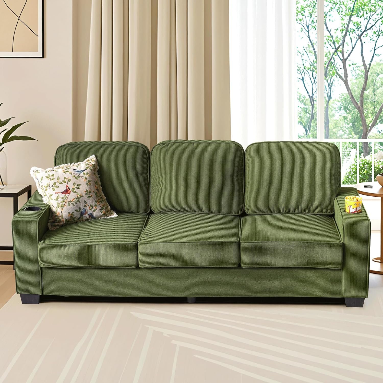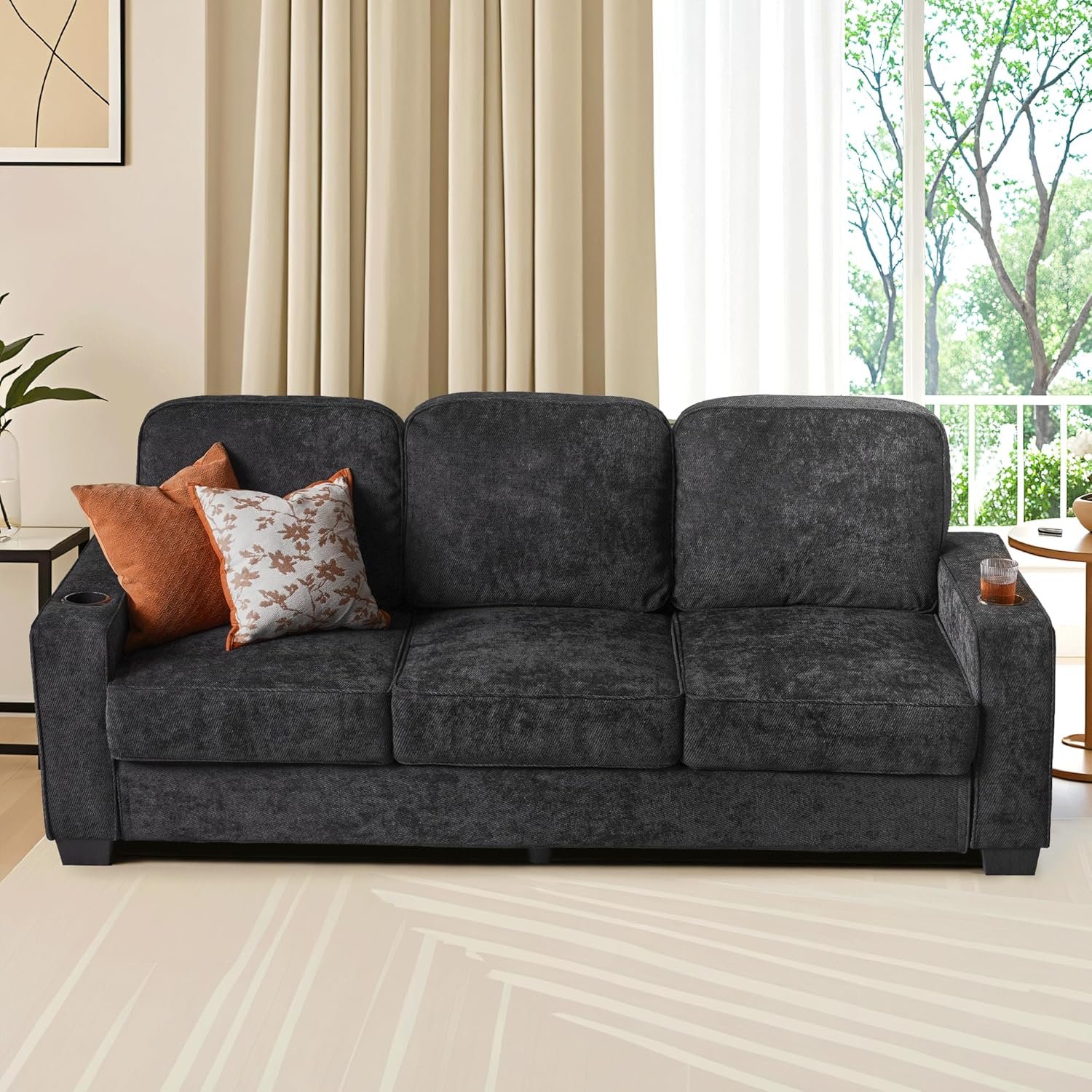 ovios 84.6″ Sofa Couch with Cup Holders, 3-Seater Comf...