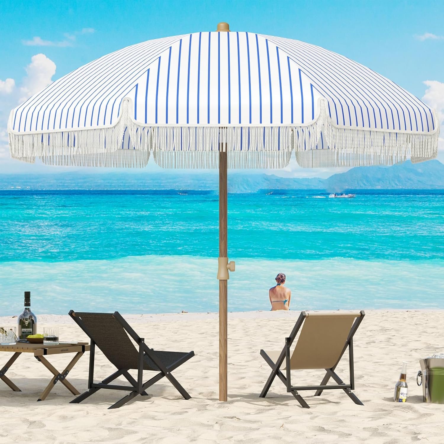 Aoxun 7ft Patio Umbrella with Fringe Outdoor UV 50+ Protecti...