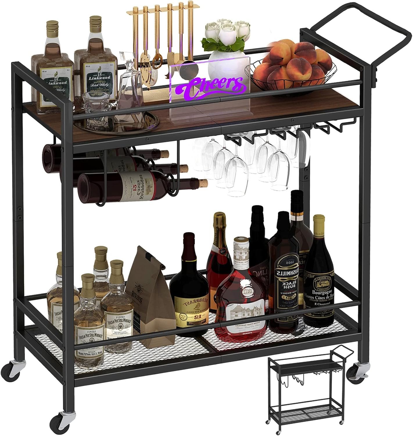 LAATOOREE Bar Cart, Two-Color Home Bar Serving Cart, Mobile ...
