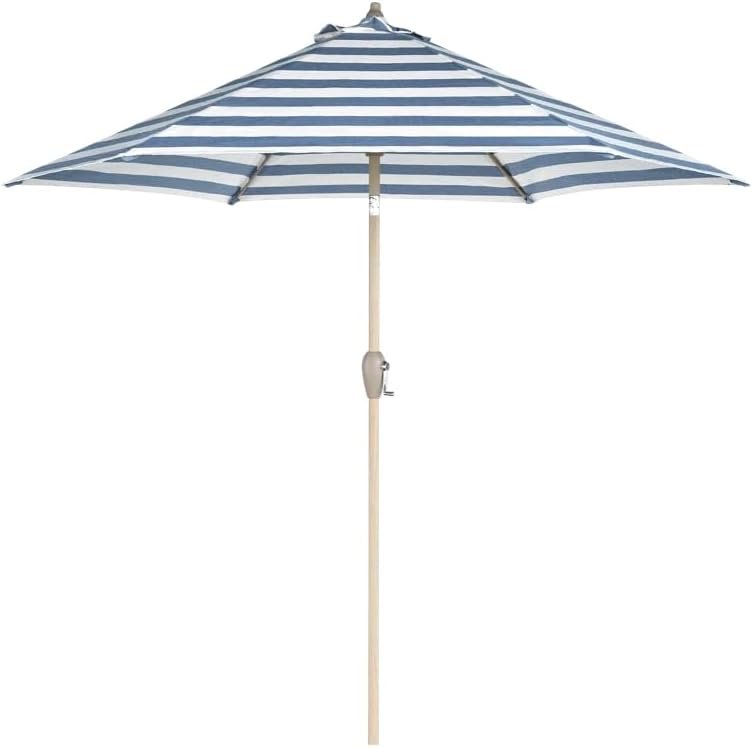 Tempera 9 Foot Self-Tilting Patio Umbrella with Blue and Whi...