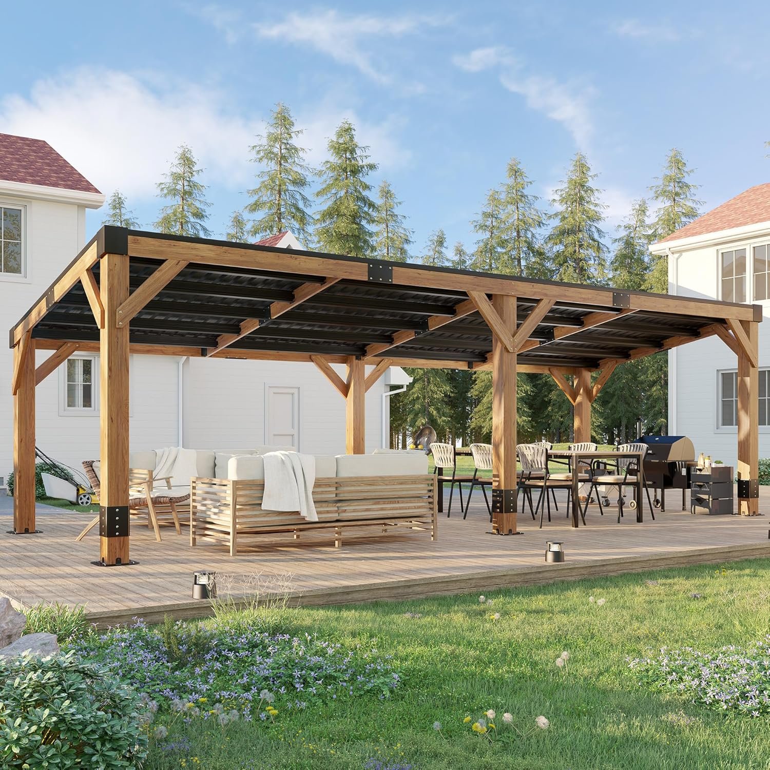 AMERLIFE 10 x 20 FT Solid Wood Gazebo with Metal Hardtop, La...