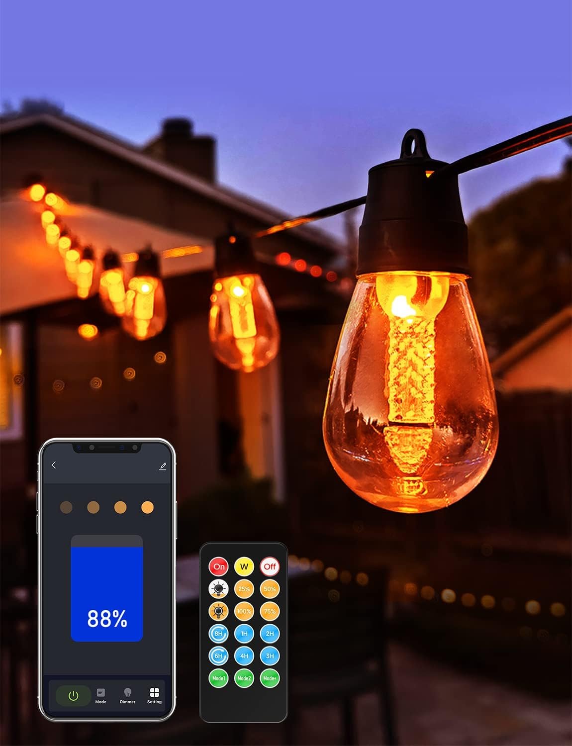 Outdoor String Lights with Dimmer – 50Ft Led Patio Lig...
