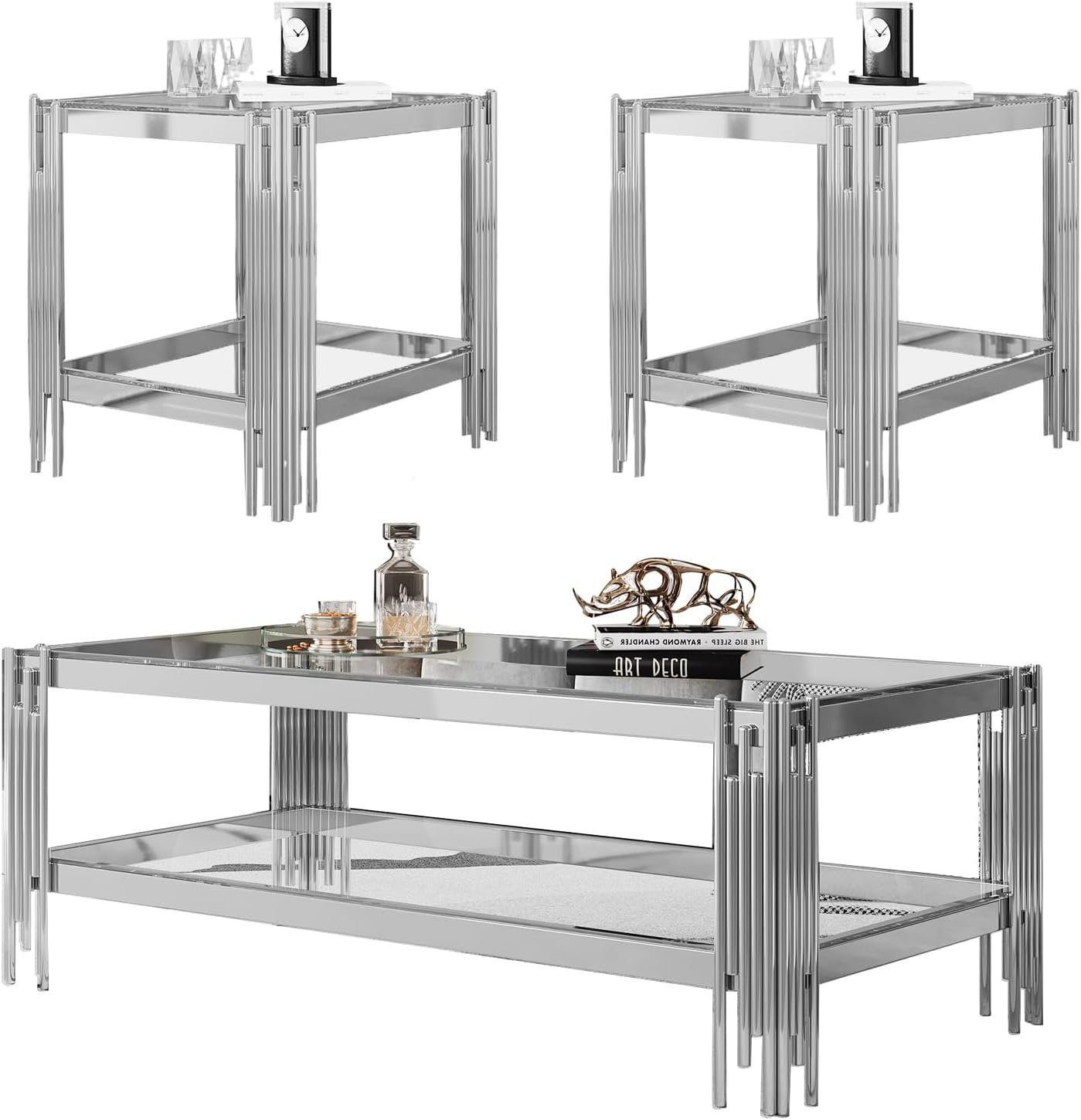 Modern Glass Coffee Table and End Table Set of 3, Luxury Cle...