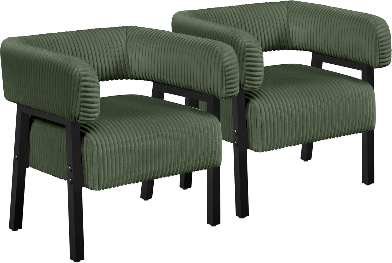 Yaheetech Corduroy Barrel Accent Chair Set of 2, Modern Upho...