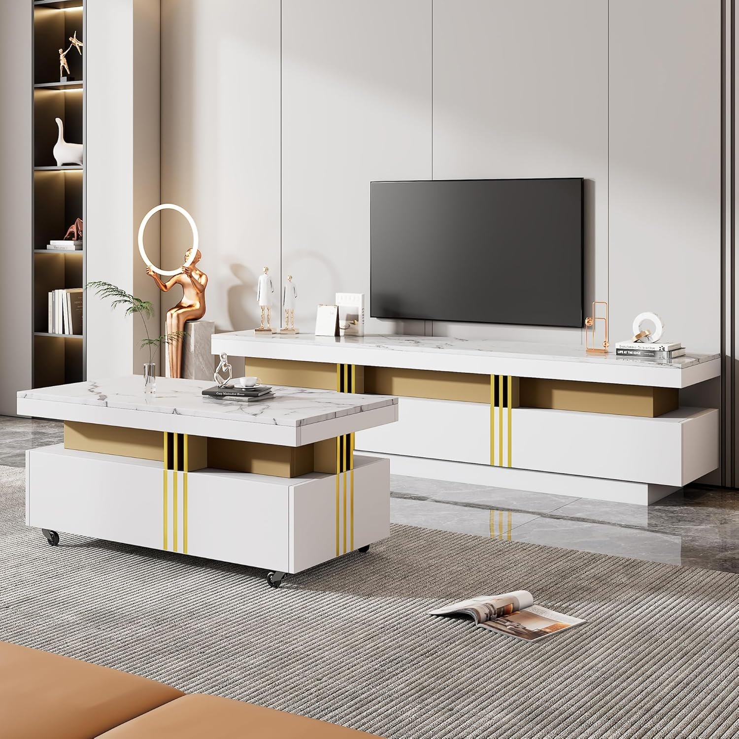 Merax Modern Luxury 2 Piece Set, High Gloss Faux Marble Top,...