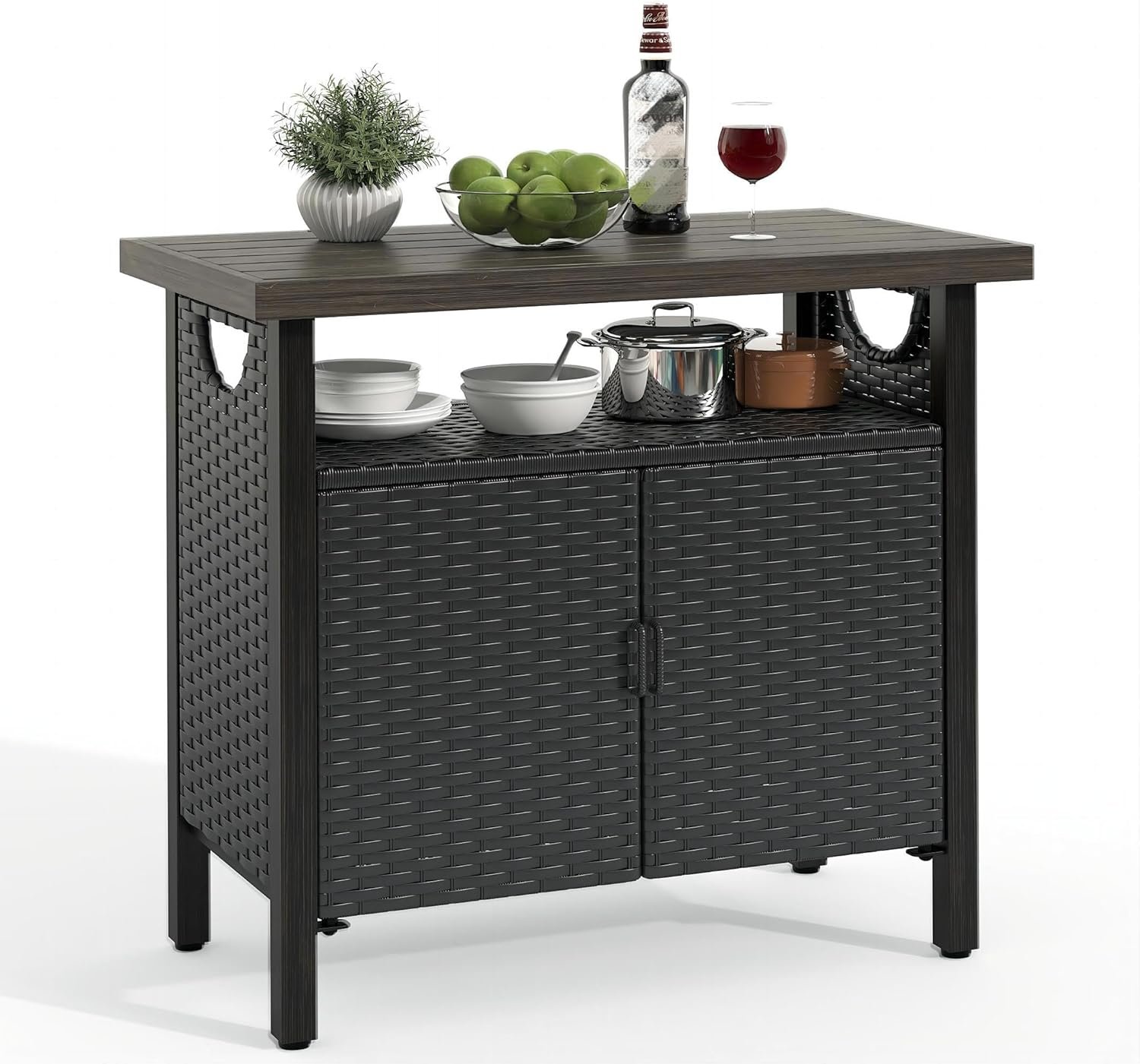 YITAHOME Outdoor Storage Cabinet, Patio Bar Table with Two D...