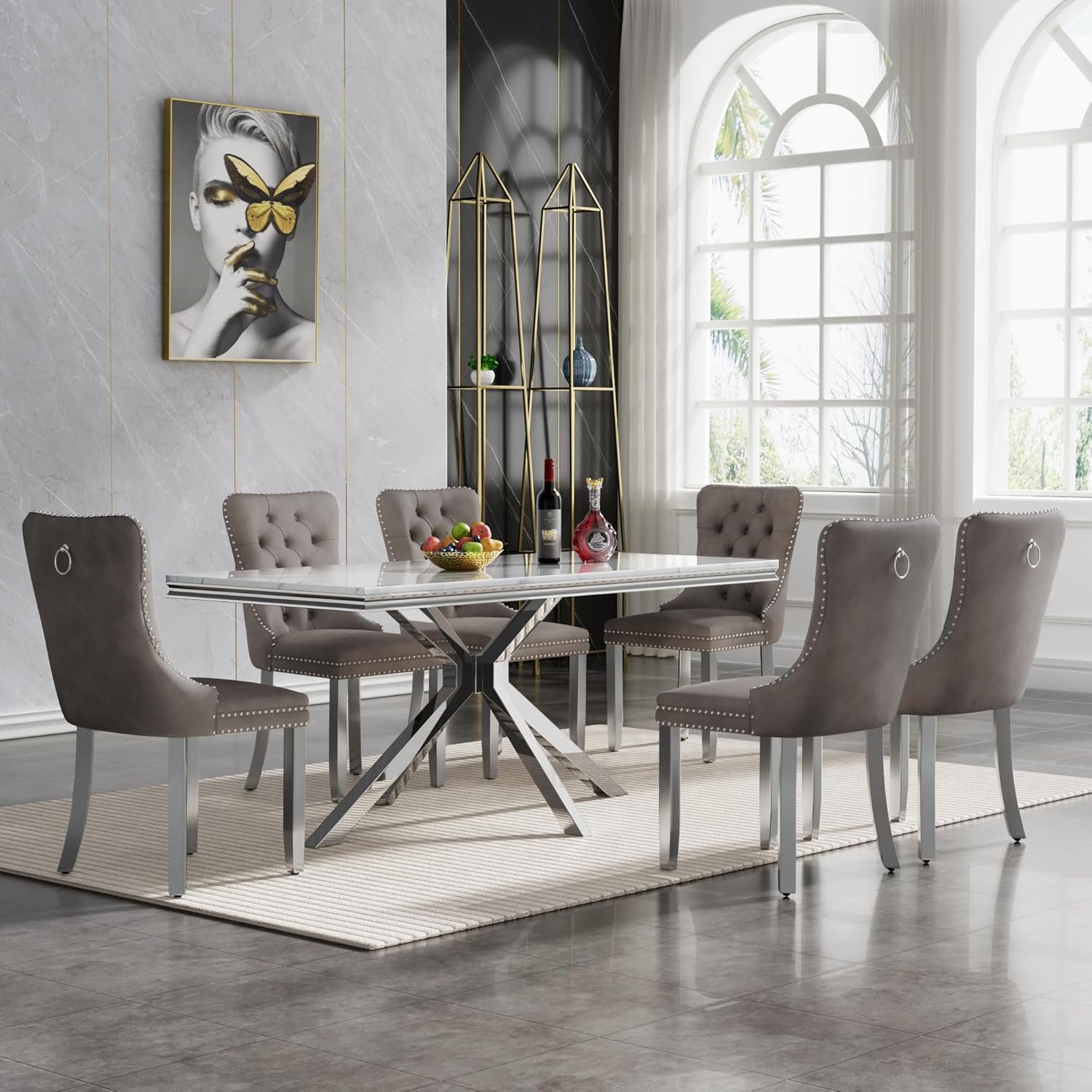 7 Piece Dining Table Set,Modern Luxury Marble Dining Table S...