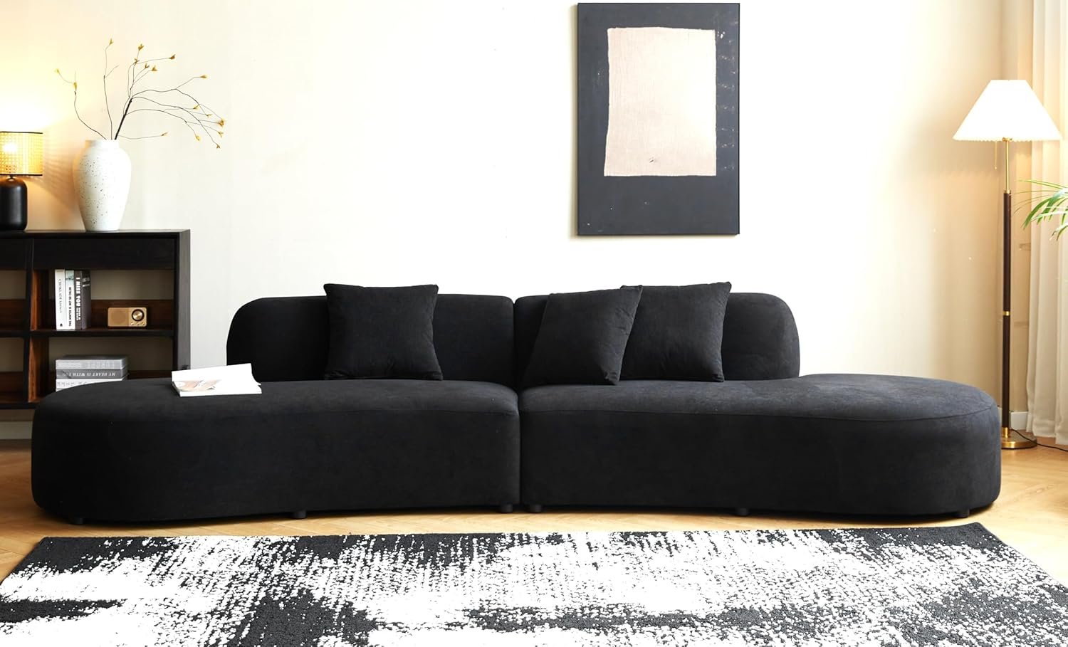 132″ Curved Sofa with Throw Pillows, 6 Seater Luxury V...