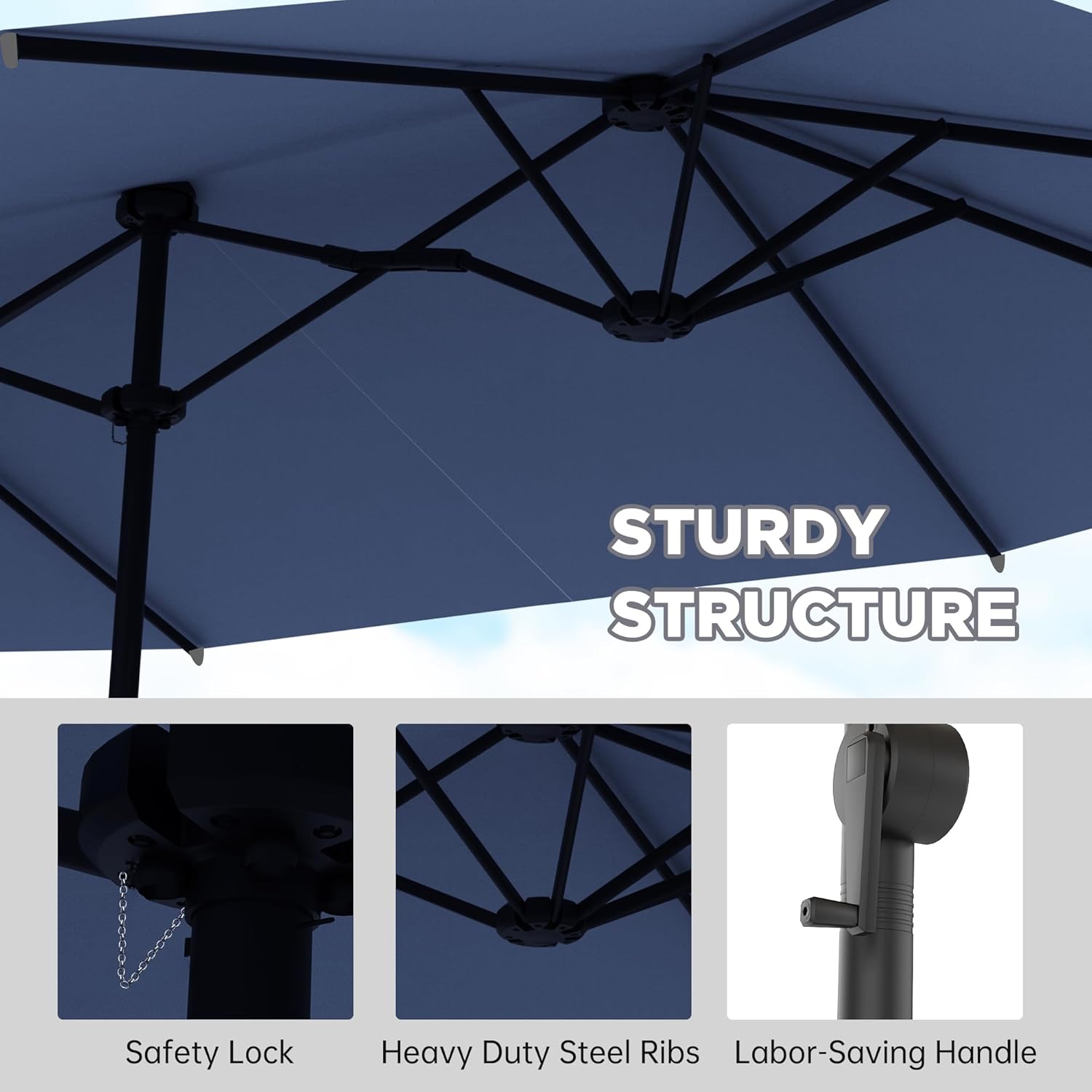 8 reviews for 15FT Large Patio Umbrella, Outdoor Deck Standing Umbrella with Crank Handle, Double-Side Rectangular Pool Umbrella for Outside, Market, Patio, Navy Blue (Base Not Include)