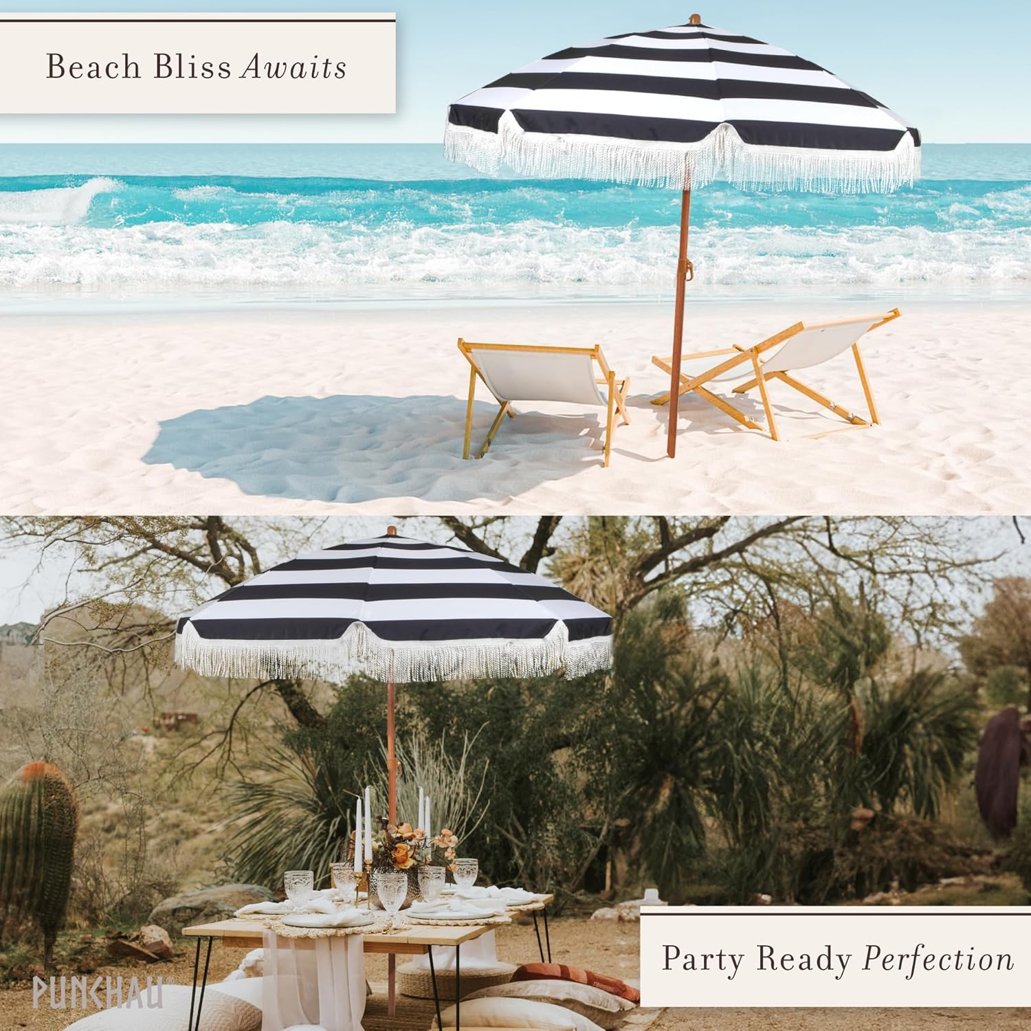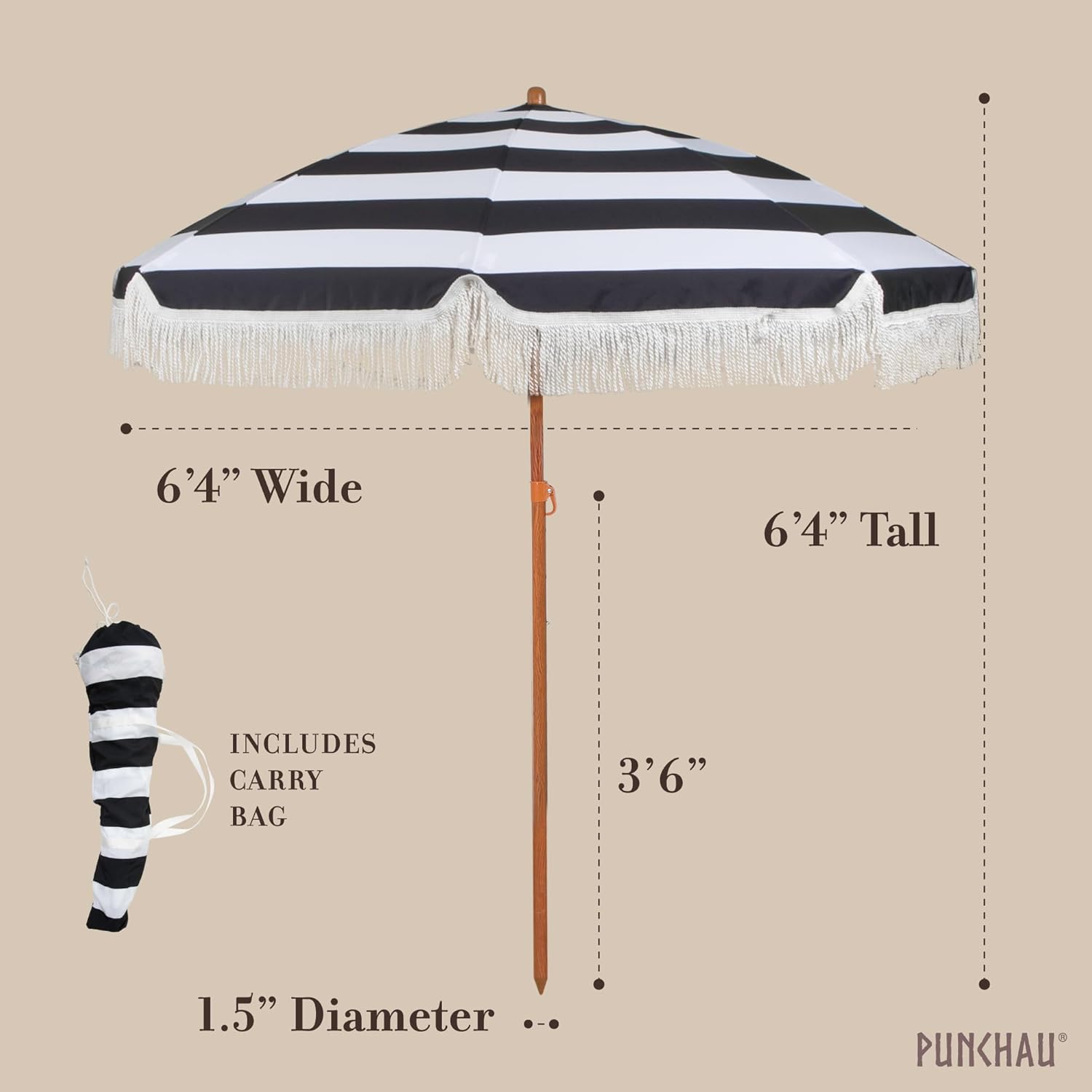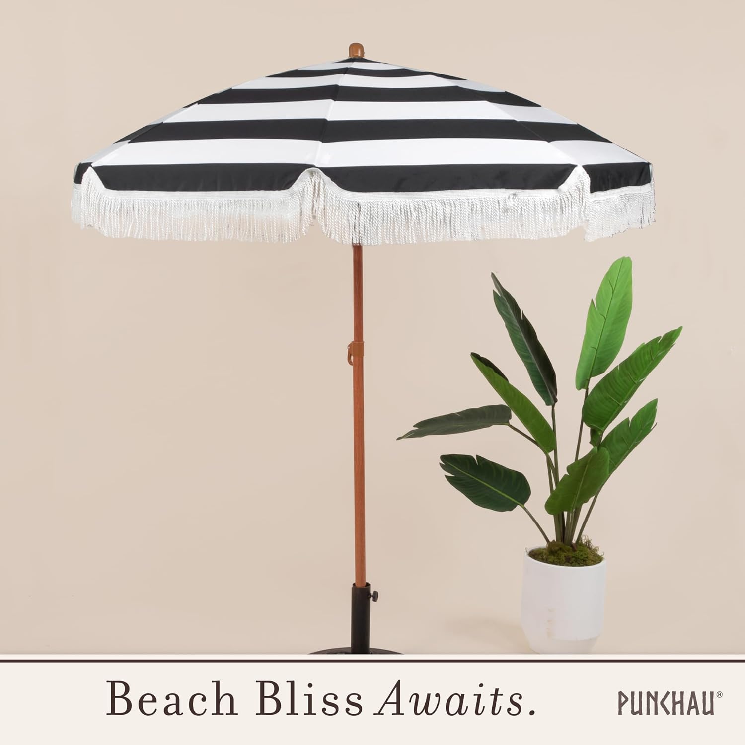 8 reviews for 6 Ft Fringe Patio Umbrella – Outdoor Umbrellas for Patio, Pool, Table, Garden, Deck, Beach, and Outdoors – Fashionable Boho Vintage Tassels & Wood Print – Push Button Tilt Pole