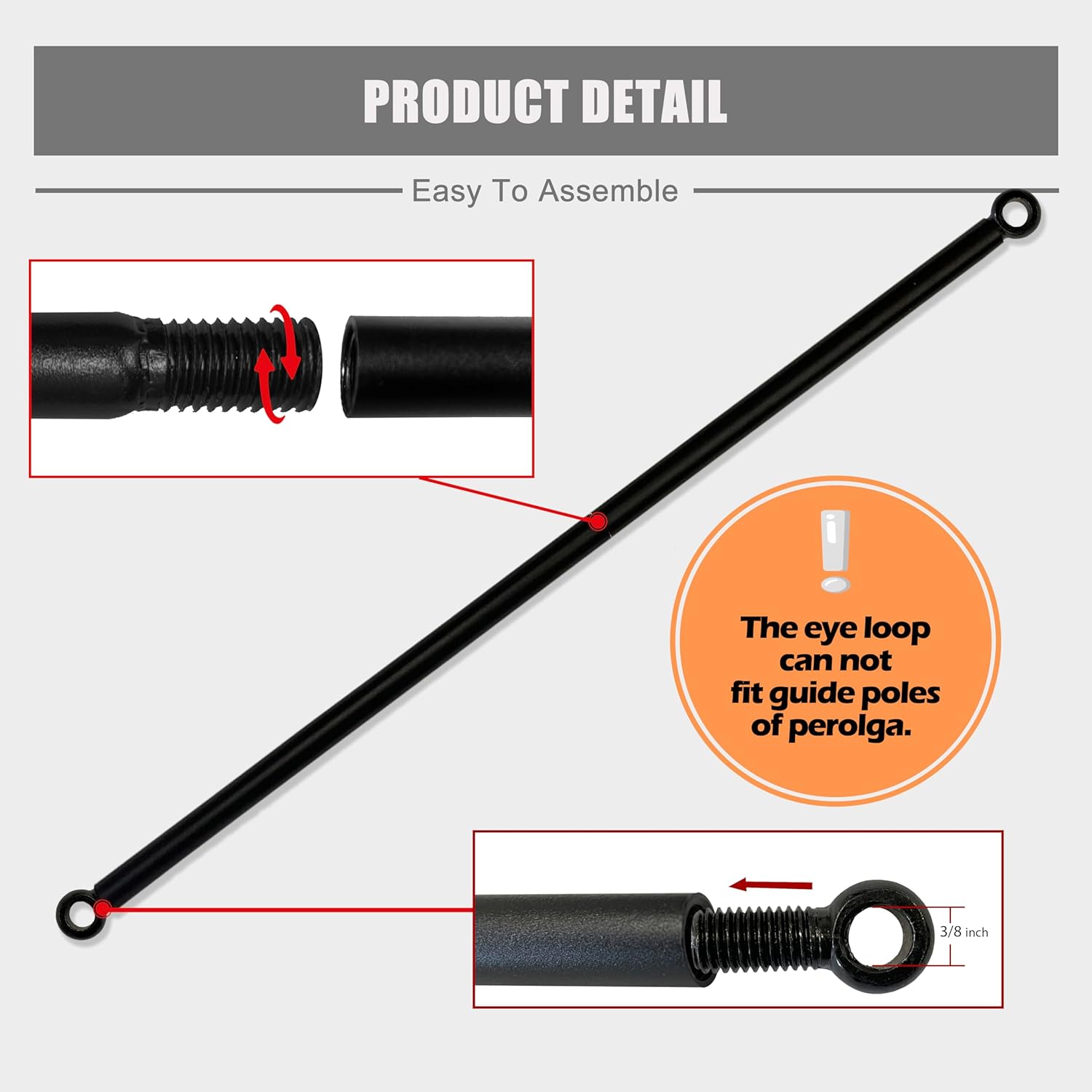 EASY USAGE – The weighted rods come in a variety of lengths to fit all universal pergola covers. Can also be used for sunshade panels, drapes and curtains.The inside dameter of the ends(eye bolts) is 1/2 in, and it cannot fit the guide poles of other steel pergolas. We sell rods with big eye bolts(1.2”+ dameter of the hole ASIN B0D19JBM6M) seperately.