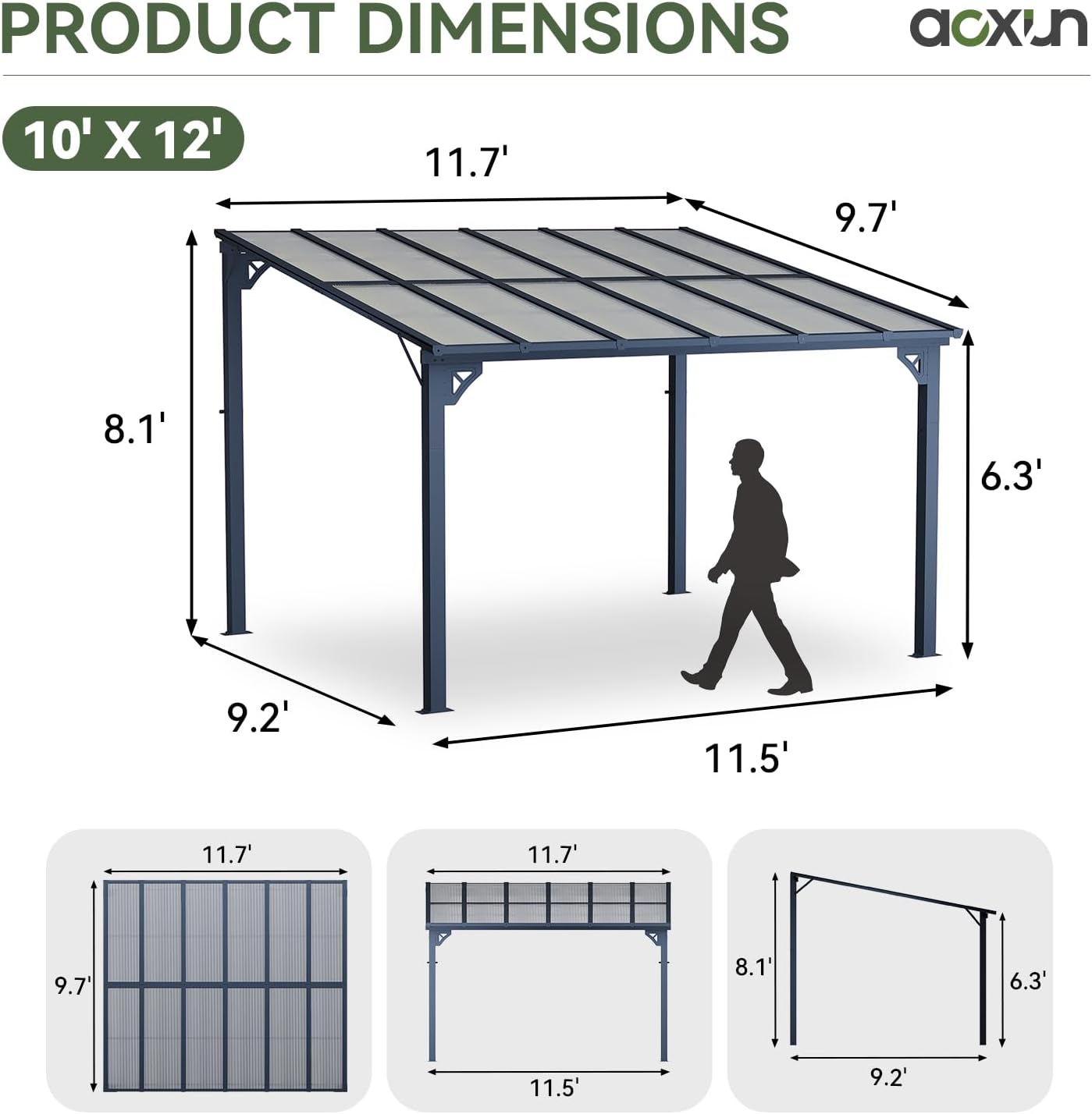 12 reviews for Aoxun 10′ x 12′ Gazebo for Patio, Gazebo Pergola with Sloped Roof, Large Wall-Mounted Heavy Duty Awnings, for Backyard, Deck, Patio