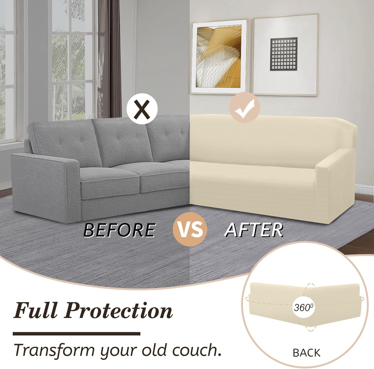 Furniture protective cover: These stretch sofa covers designed for sectional sofas can fully cover your sofa, providing comprehensive protection. The magic sofa covers can protect your furniture from everyday wear and tear, tears, stains, dog hair, and pet scratches. Pet friendly couch covers make it easy to clean up any spills promptly, helping you avoid costly investments in new furniture.