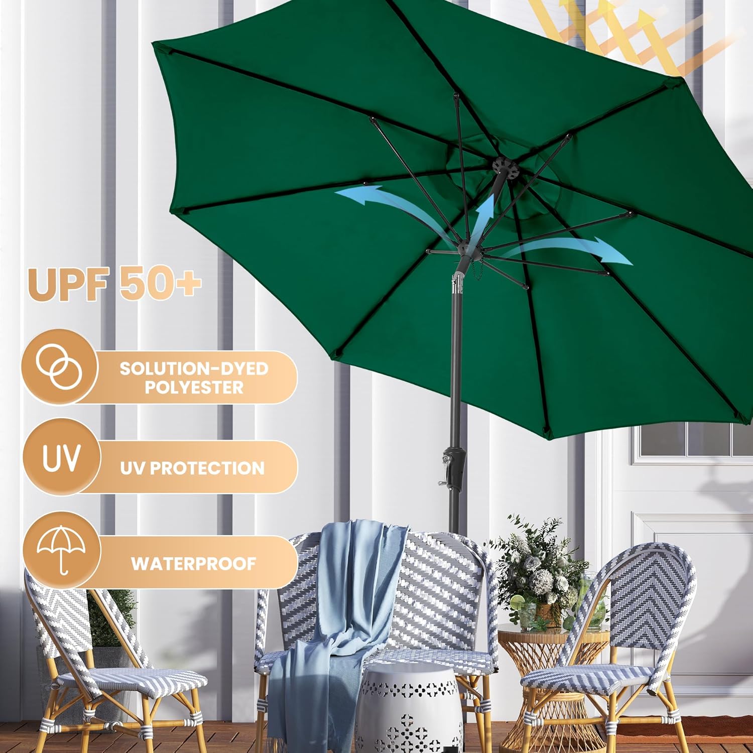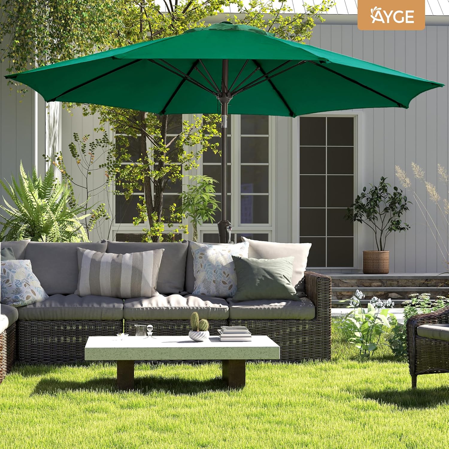 8 reviews for Ayge 9FT Large Outdoor Patio Umbrella Market Table Umbrella-UV Resistant, Easy Push Button Tilt and Crank, 8 Sturdy Fiberglass Ribs Heavy-Duty Pool Umbrella for Deck, Backyard,Garden