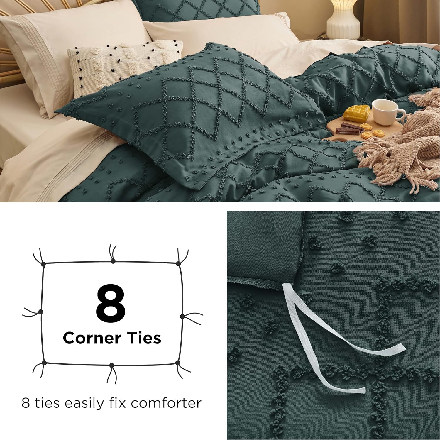 13 reviews for Bedsure Boho Duvet Cover Queen Size – Boho Bedding, Tufted Queen Duvet Cover for All Seasons, 3 Pieces Embroidery Shabby Chic Home Bedding,Comforter Not Included (Forest Green, 90″ x 90″)