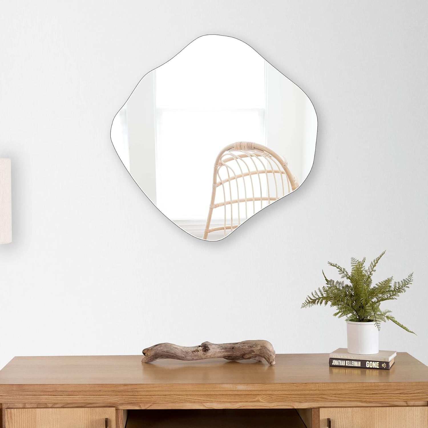 9 reviews for BOMINICA Irregular Wall Mirror Asymmetrical Mirror Frameless Mirror for Bathroom Living Room Entryway Bedroom, 20″ x 20″