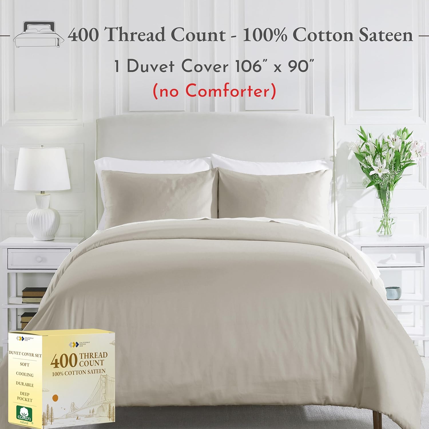 California Design Den 100% Cotton Duvet Cover King Only – Winner Good Housekeeping Best Bedding Awards 2025, Premium 400 Thread Count, 100% Cotton Sateen, Button Closure & Corner Ties – Beige