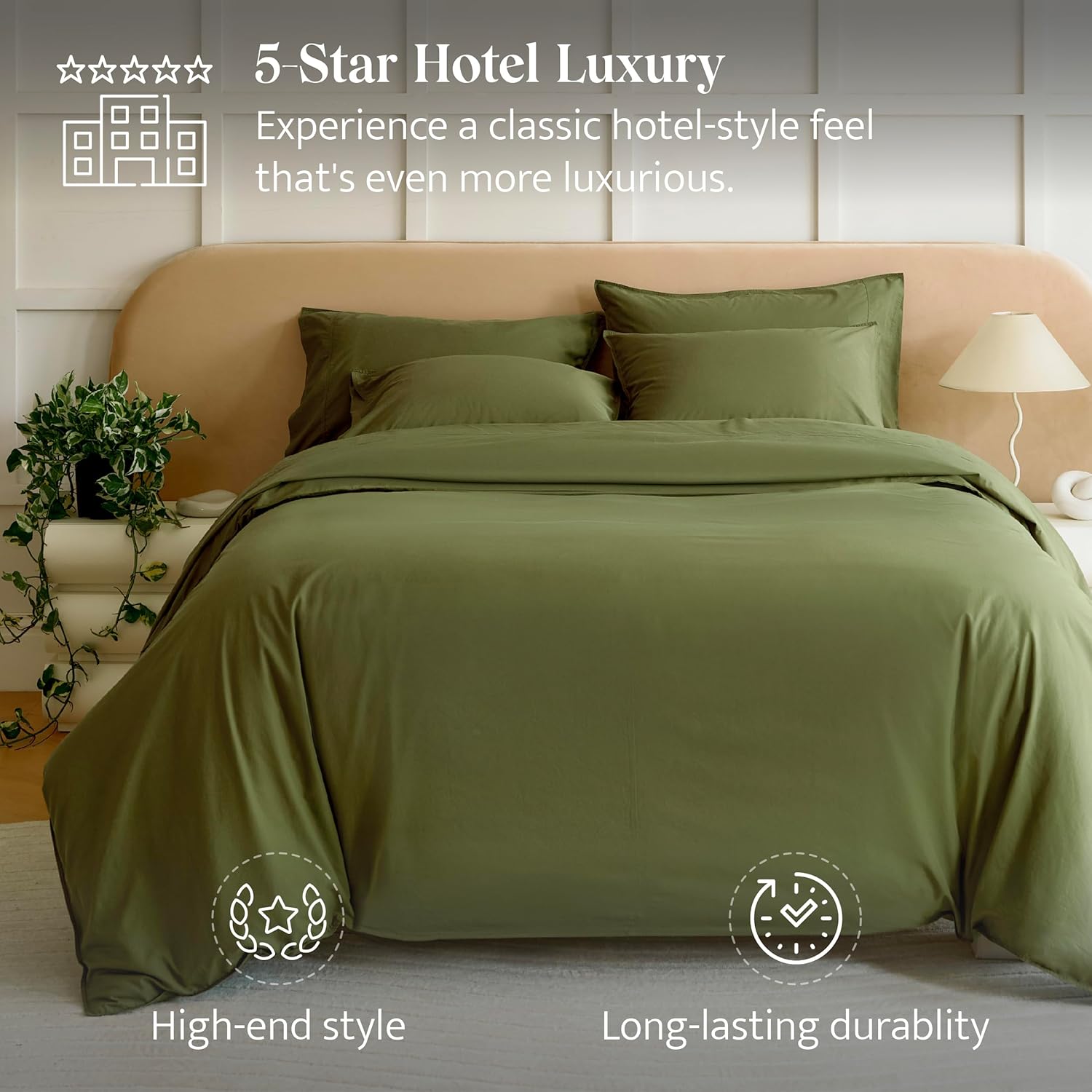 Packaging: It came in such beautiful and sustainable packaging.Color: Love the olive color, matched the images almost exactly.Handfeel: The texture has such a nice and soft handfeel. I work in apparel manufacturing so I know all about Tencel and how it softens overtime! It doesnât wrinkle very much, but if I leave it in the dryer for too long, I can easily steam them out.Quality: Overall youâre getting such great quality for what you pay for. Iâm honestly shocked that these were only $10 more than my cheap polyester covers I got from Target. Wish I had known about these sooner!!