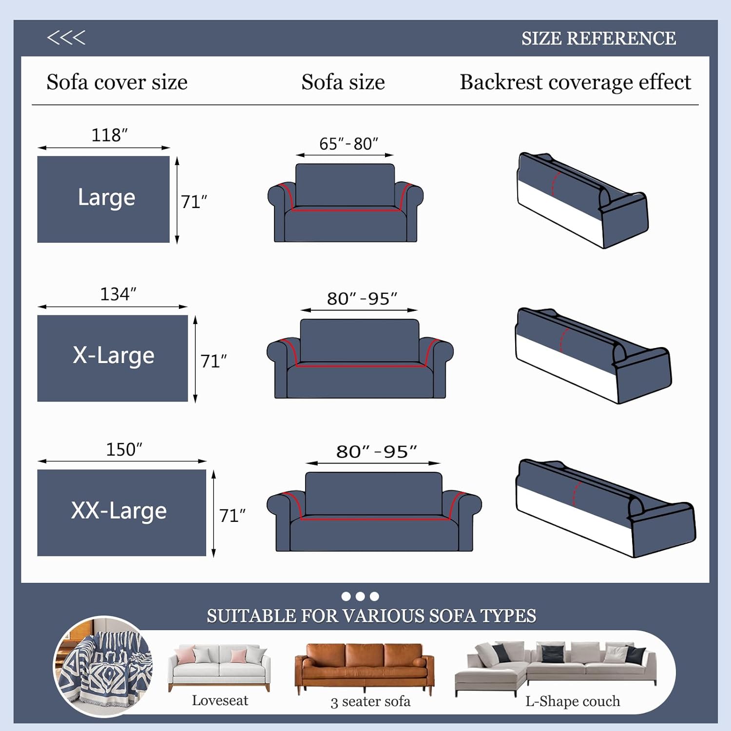 ★ Size Guide: Recommend Large Size 71″ x 118″ for Loveseat; X-Large Size 71″ x 134″ for sofa; XX-Large Size 71″x150″ for oversized sofa. Covers for couch provide full protection for various sofa types, such as loveseat, futon, armrest sofa, 3-4 seat sofa or recliner couch. For sectional couch, L-shaped sofa need 2 piece slipcover and 3 piece works well on U-shape couch. Please measure your sofa before purchasing