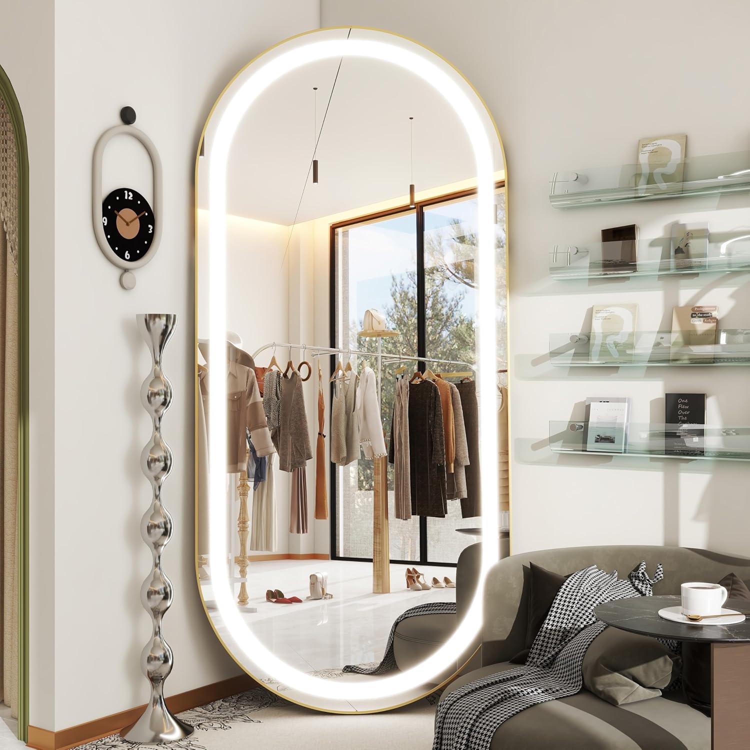 8 reviews for FENNIO 70″ x 32″ Large Luxury Wall Mounted Mirror with LED Lights – Oval Full Length LED Lighted Full Body Dressing Mirror for Bedroom, Salon, Brushed Aluminum Frame, Tempered Glass