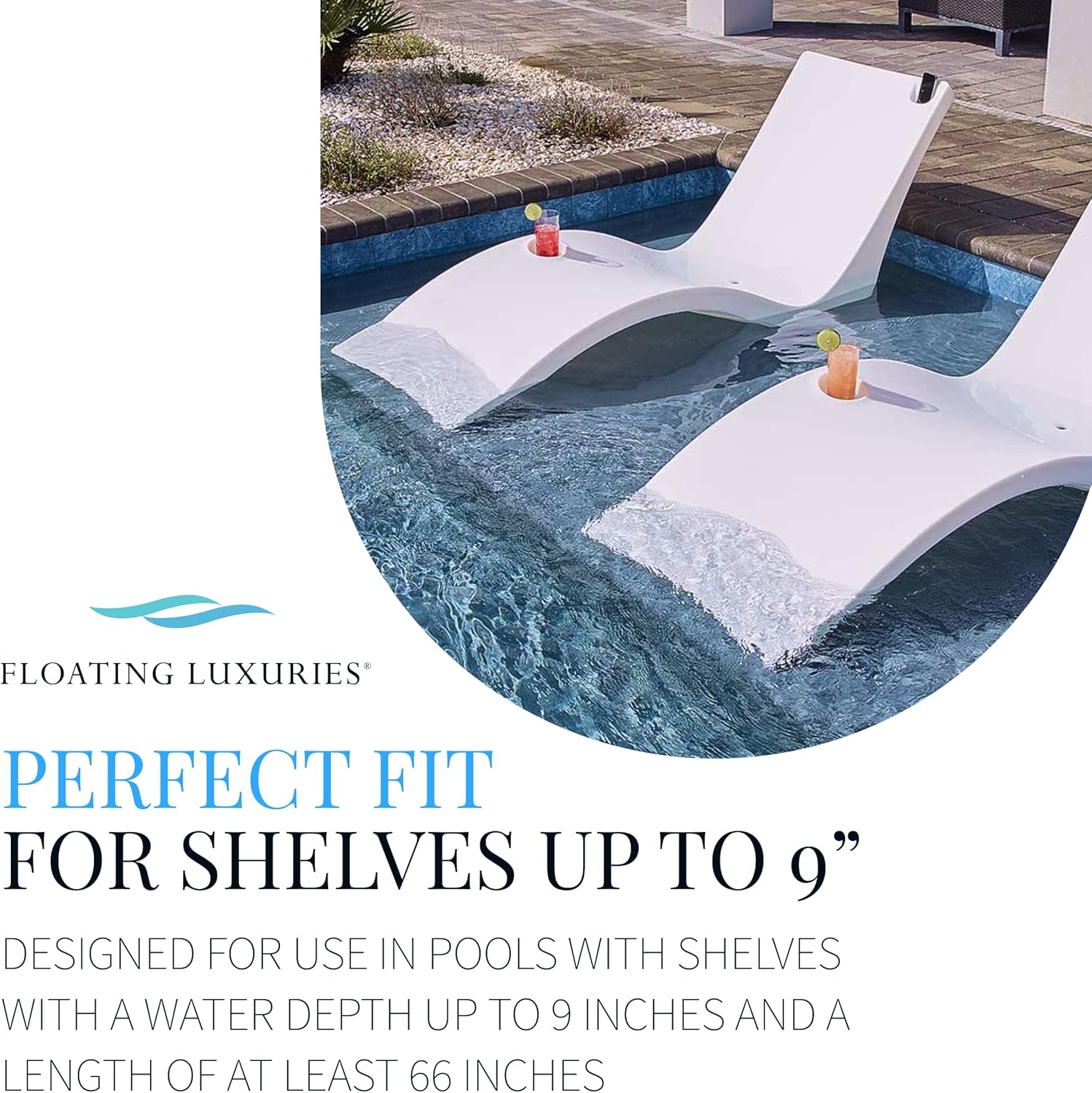 PERFECT FIT FOR SHELVES UP TO 9 INCHES: Designed exclusively for pools with shelves up to 9 inches deep, ensuring a comfortable and stable lounging experience in shallow water. Do not use in pool shelves deeper than 9 inches, as this will cause the chair to begin to float. Designed to fit tanning shelf that is at least 66 inches in length.