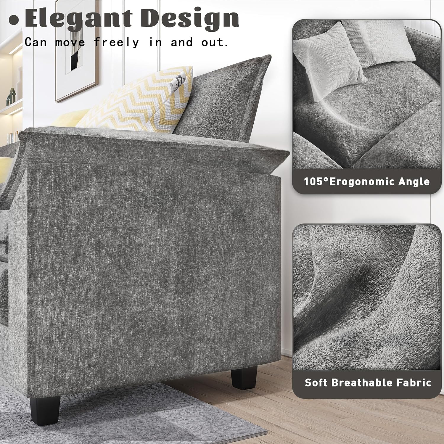 [Movable Ottoman]: The convertible sofa couch features 2 movable ottomans that can be easily repositioned to suit your needs. It offers additional comfort and versatility, serving as extra seating, enhancing the functionality of your living area.
