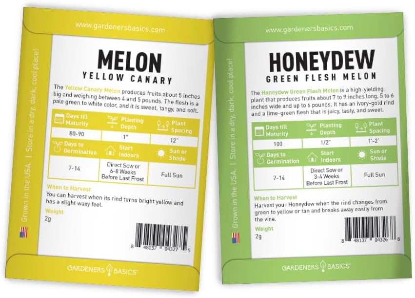 9 reviews for Gardeners Basics, Melon Fruit Seeds for Planting Home Garden 5 Variety Packs – Hales Best Cantaloupe, Crimson Sweet Watermelon, Yellow Canary Melon, Green Flesh Honeydew Melon, Sugar Baby Watermelon