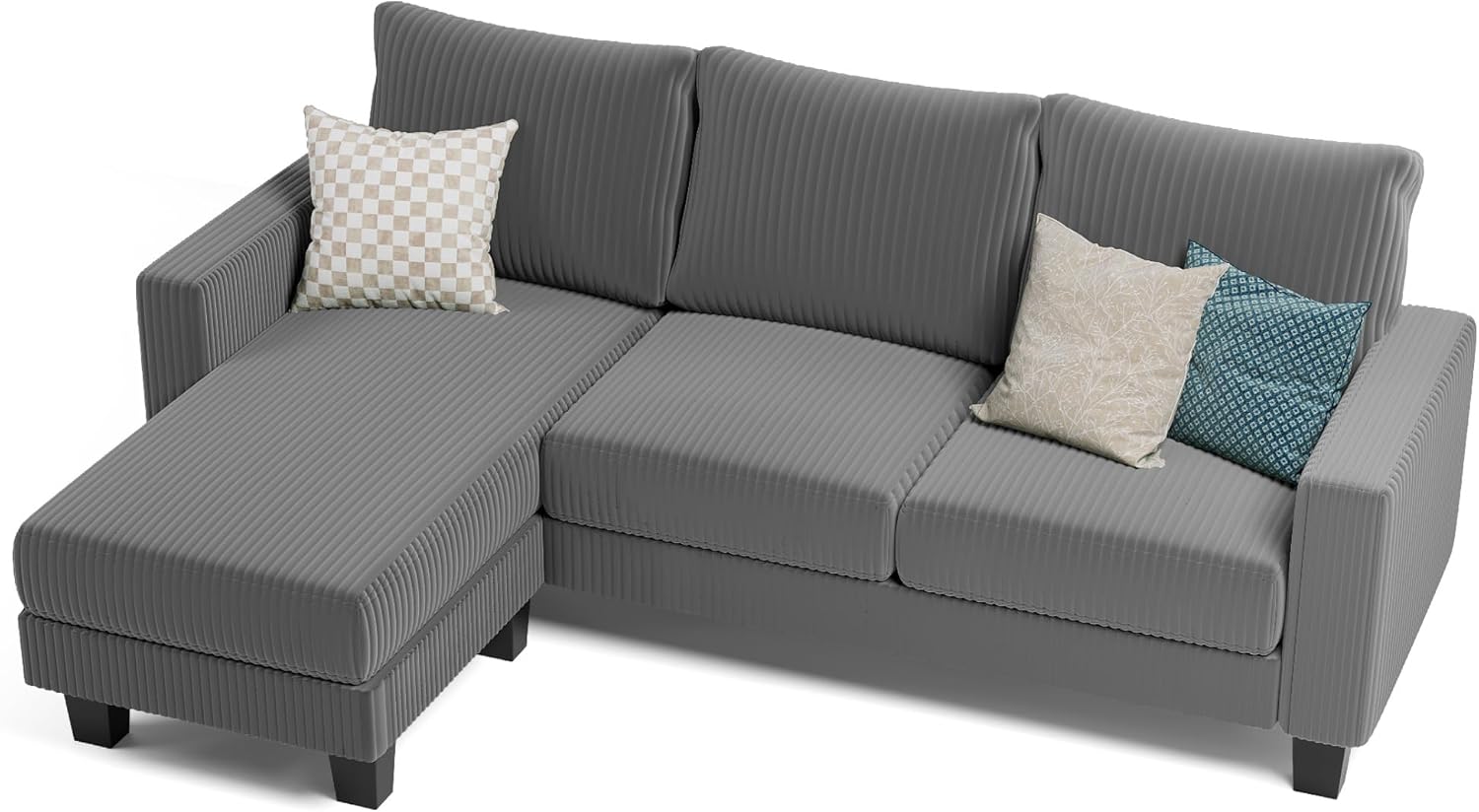 8 reviews for Homall Sofa for Living Room, Couch with Convertible Chaise, 3 Seat L-Shaped Sofas, Comfy Corduroy Couches for Apartment, Small Space, Gray
