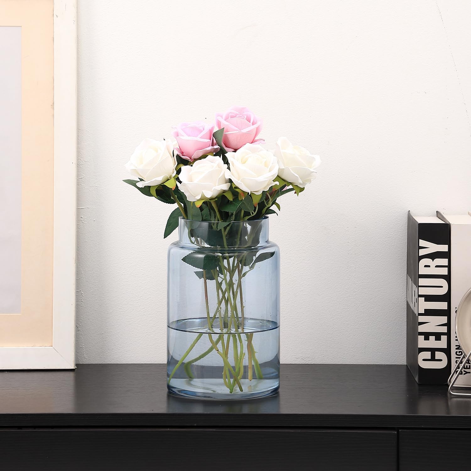 9 reviews for Large Glass Vase, 9 Inch Blue Glass Vase, Large Flower Vases for Bouquet, Tall Wide Mouth Vases for Flowers, Home, Wedding, Living Room, Office Decor