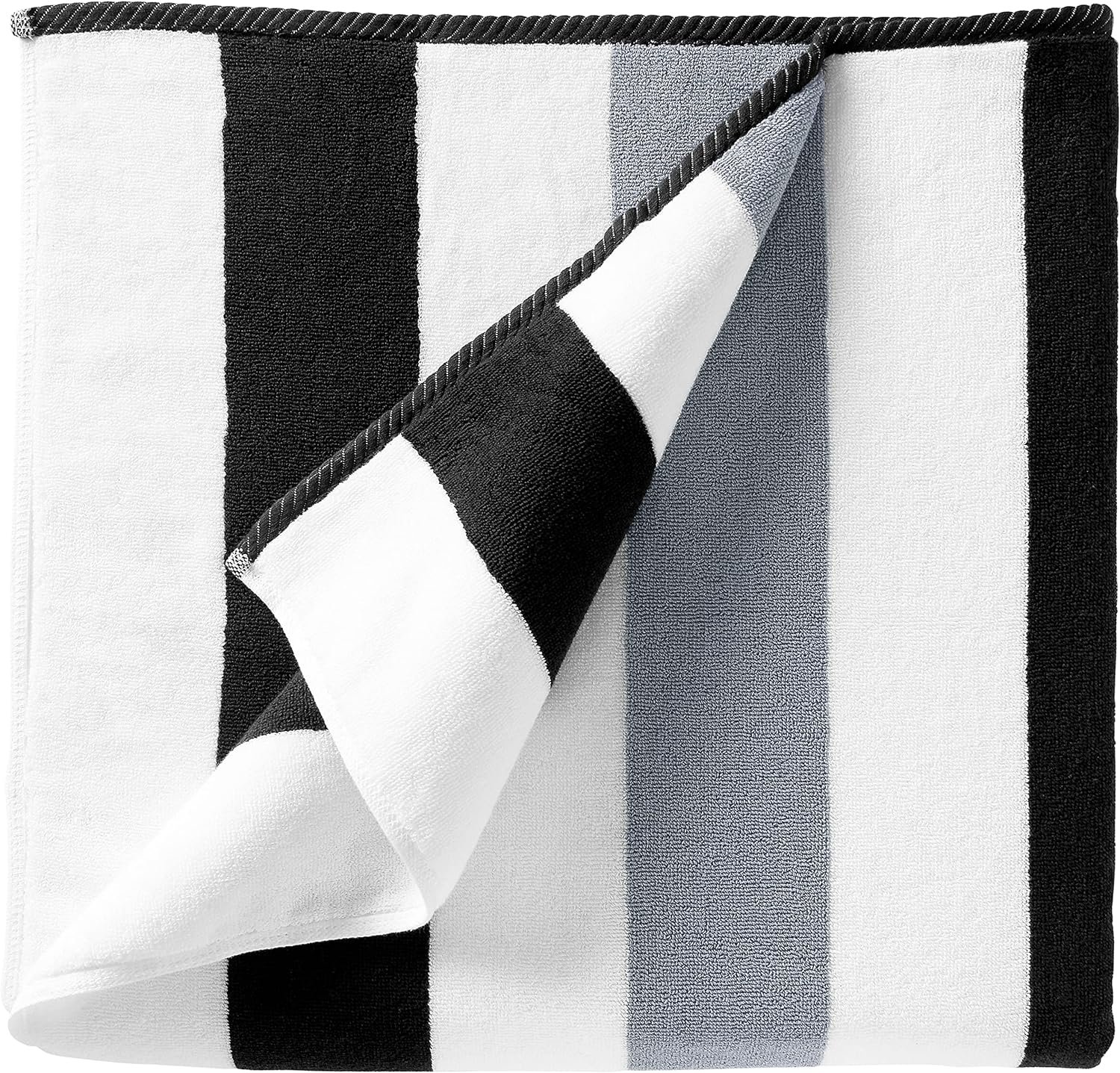This was completely a wrong product and a knock off does not say Martha Stewart’s cabana luxury spa towel. It says Martha’s yarn died towel set. It is like a microfiber tower instead of a super absorbent oversize beach towel was super light in weight instead of being a heavy, thick towel Was not even the right color totally dissatisfied and not happy. Look at the pictures below. The tile should’ve been a blue and teal color with darker blue stripes in the towel. The set I received was just blue and white not what showing in the picture.