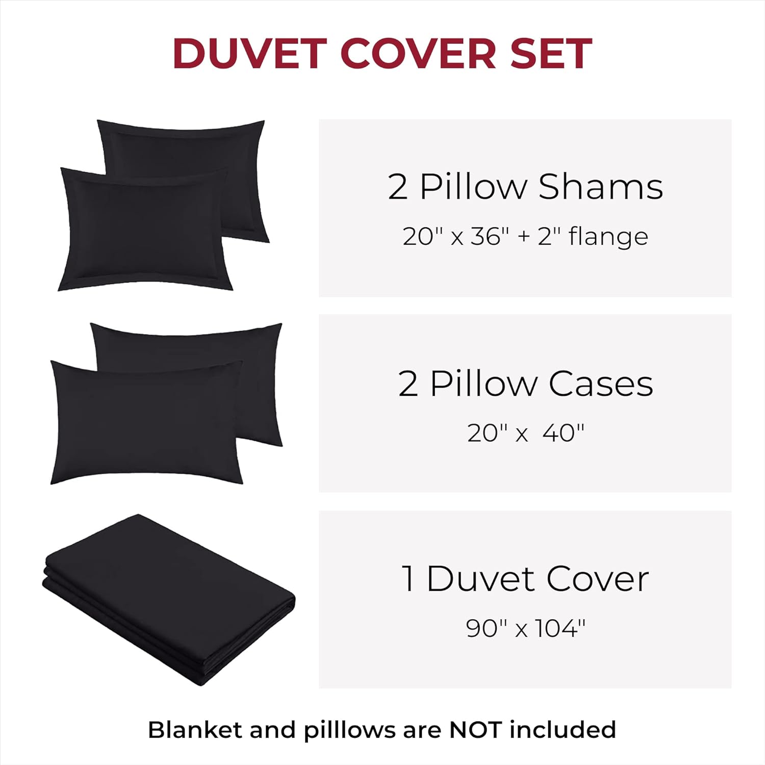 Mellanni Duvet Cover Set – 5 PC Iconic Collection Bedding Set – Hotel Luxury, Extra Soft & Cooling – Microfiber – Button Closure and Corner Ties (King, Black)