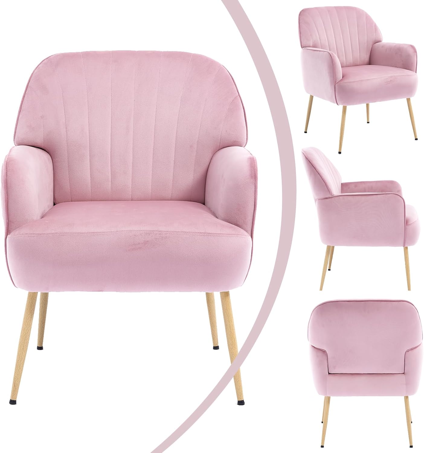 1 review for Modern Velvet Accent Chair, Comfy Upholstered Single Sofa Side Chair with Armrests and Back, Luxury Barrel Armchair with Metal Legs for Living Room, Bedroom, Office and Vanity, Pink