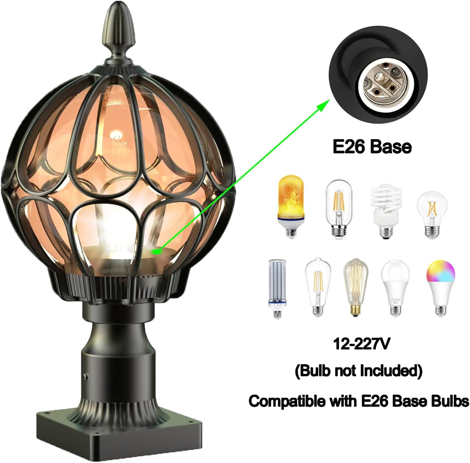 Outdoor Post Lights,Outdoor Column Lights,Deck Lights,Post Cap Lights,lamp Post Light,with E26 IP54 Waterproof,Hard Wired Fence Post Lights,Modern Light Fixture (Black, Large)
