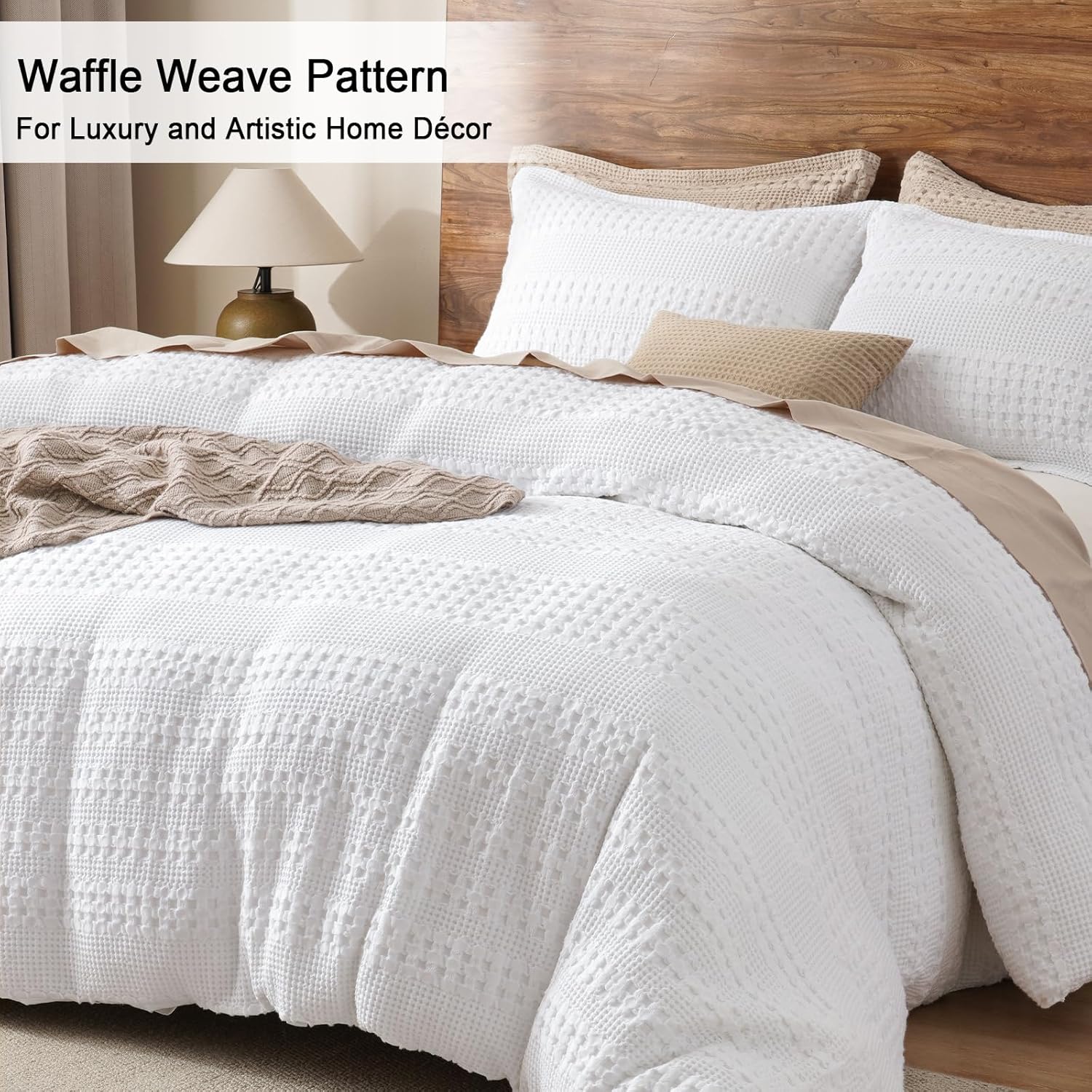 Elegent Waffle Design: PHF waffle duvet cover set is stylish and elegant with its unique waffle texture, adding a premium tactile feel to your space, while its dimensional weave enriches visual depth,combining aesthetics with functionality. The neutral solid-color design effortlessly blends with various home decors, making it perfect for creating a modern minimalist bedroom.