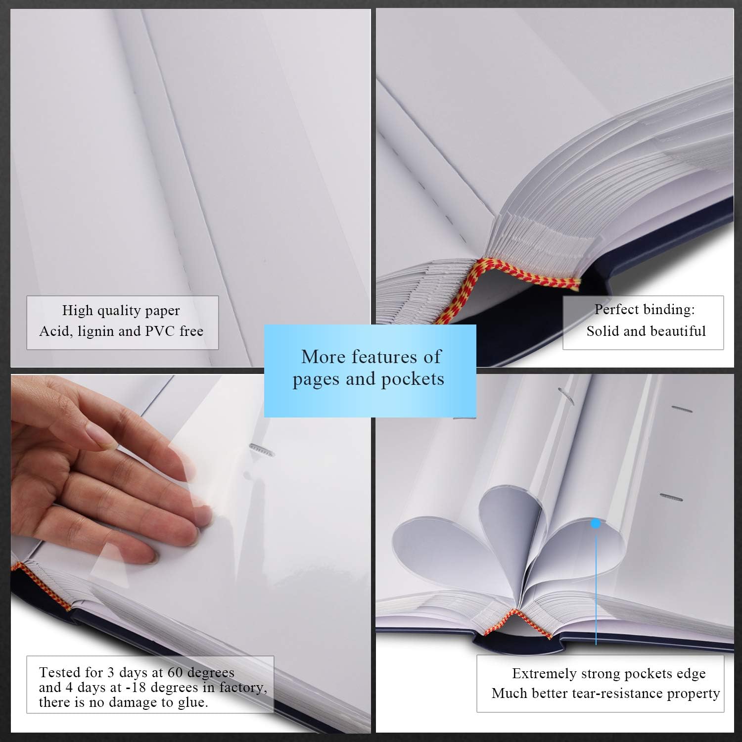 【SAFE AND LONG-TERM PRESERVATION】Photo safe: acid, lignin and PVC free. The inside pocket sleeves are made of clear PP material, 0.5 times thicker than the industry standard, keeping your photos air free and dustproof, tear resistant, provides a high-quality preservation to your memories.