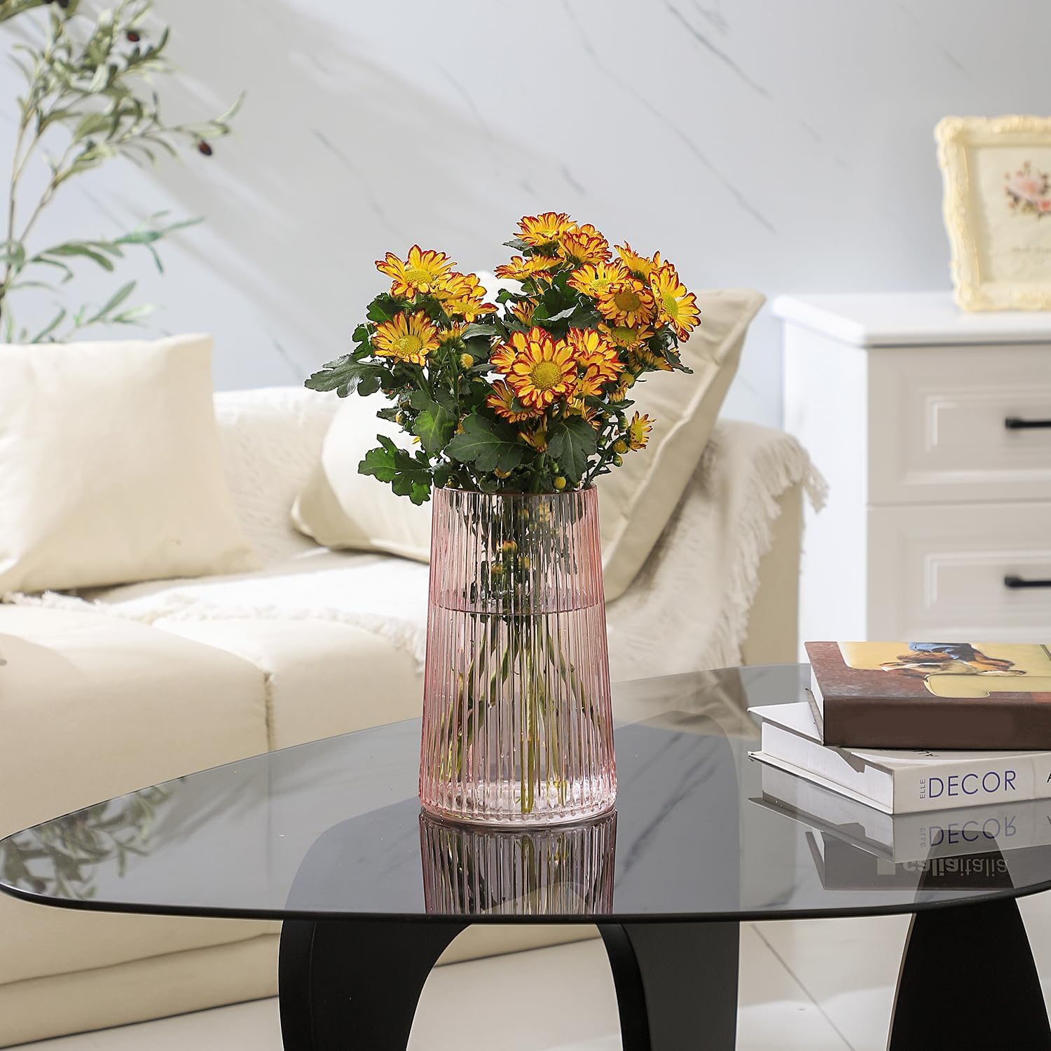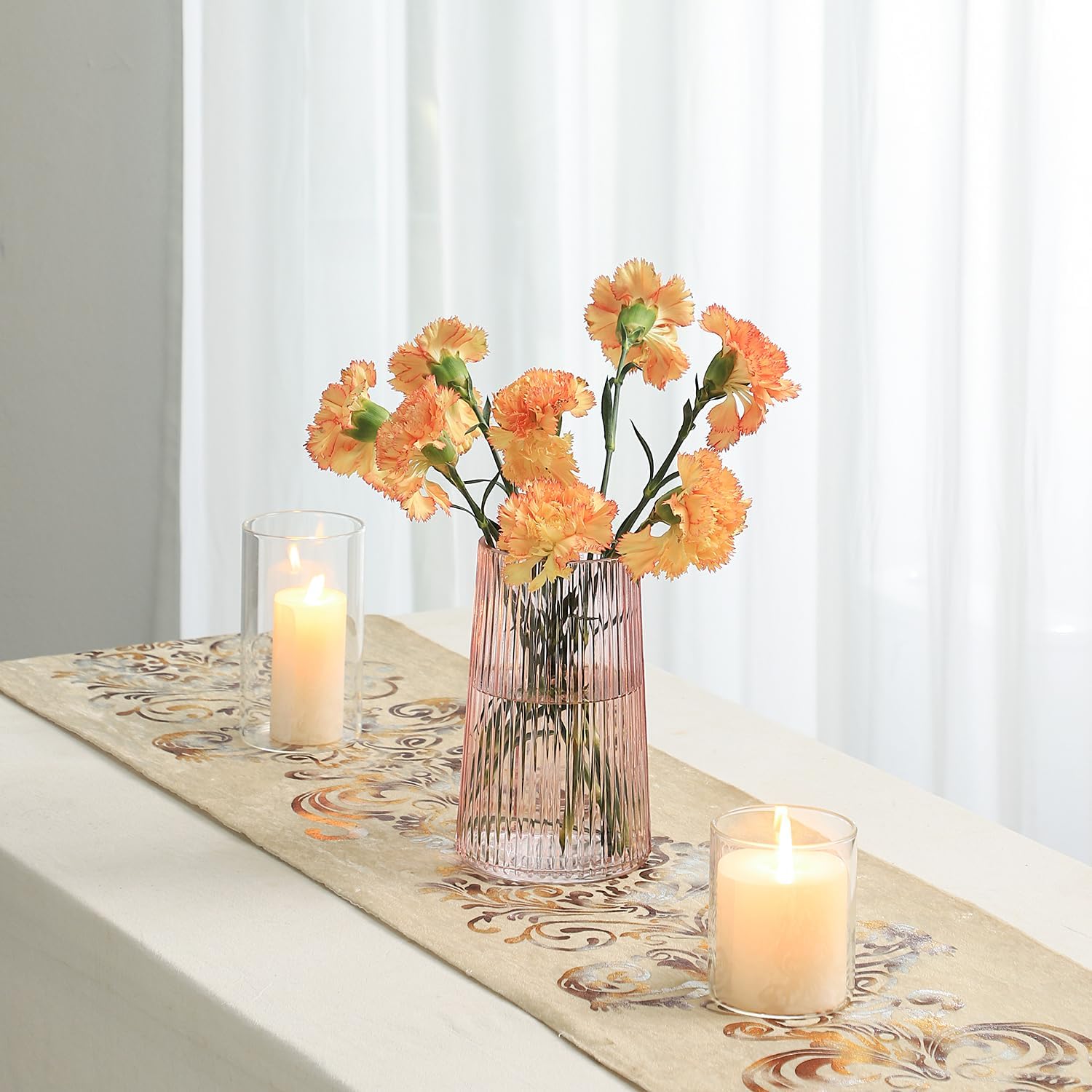 10 reviews for Pink Glass Vase for Flower, Flower Vase for Bouquet, Modern Glass Vases, Ribbed Vases for Living Room, Bedroom, Dining Table, Office, Wedding, Centerpieces, 8 Inches