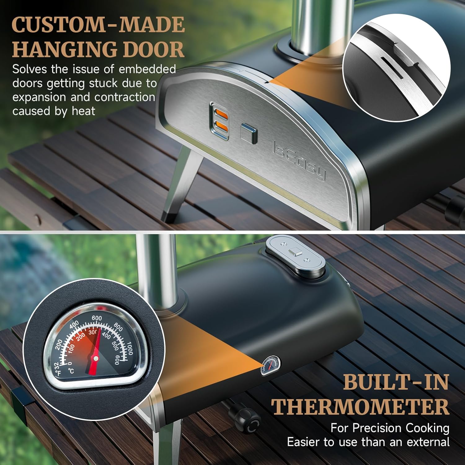 ENHANCED FEATURES: Our wood fire pizza oven is designed with a custom-made hanging door that solves the common issue of embedded doors getting stuck due to expansion and contraction caused by heat during the grilling process, giving you zero hassle.
